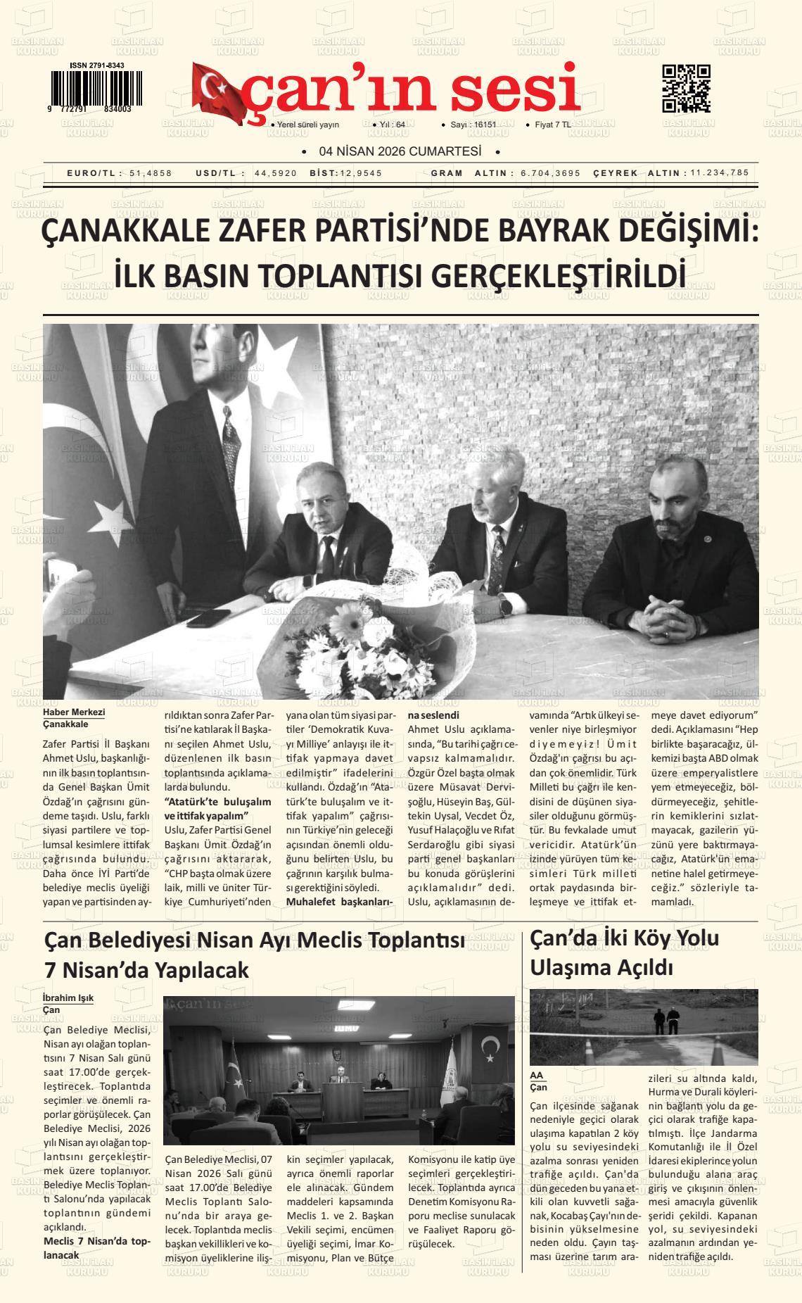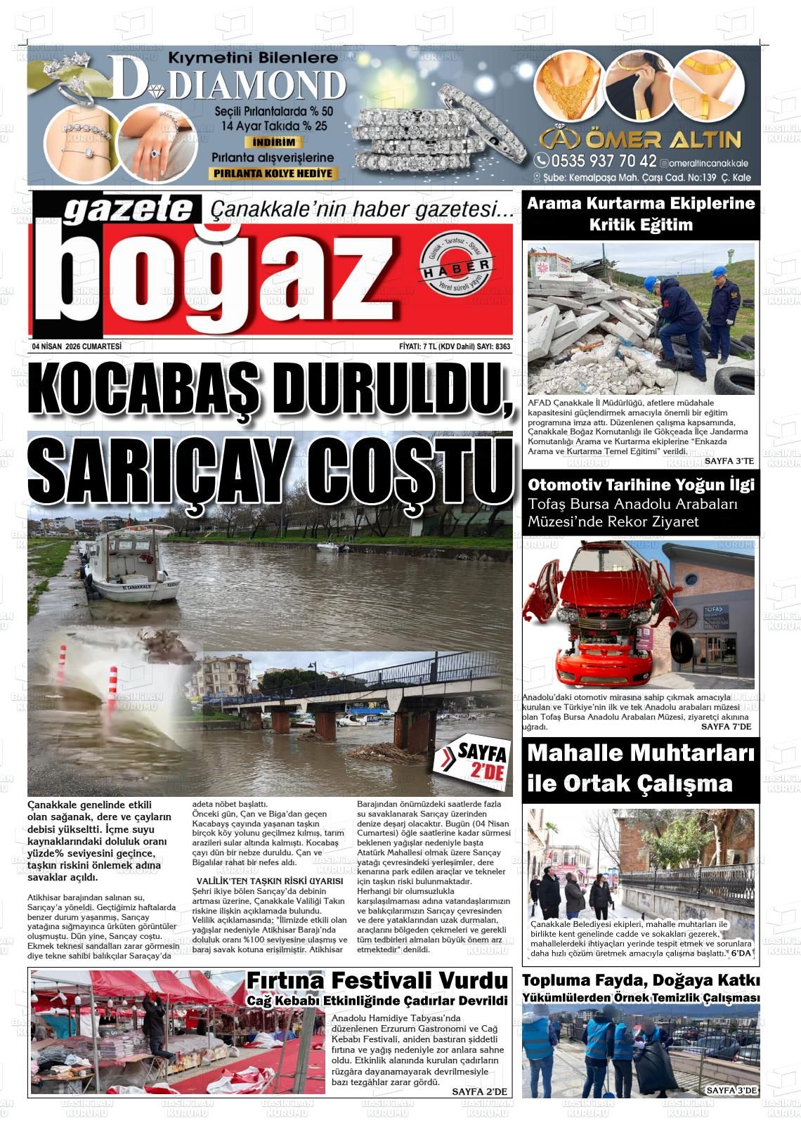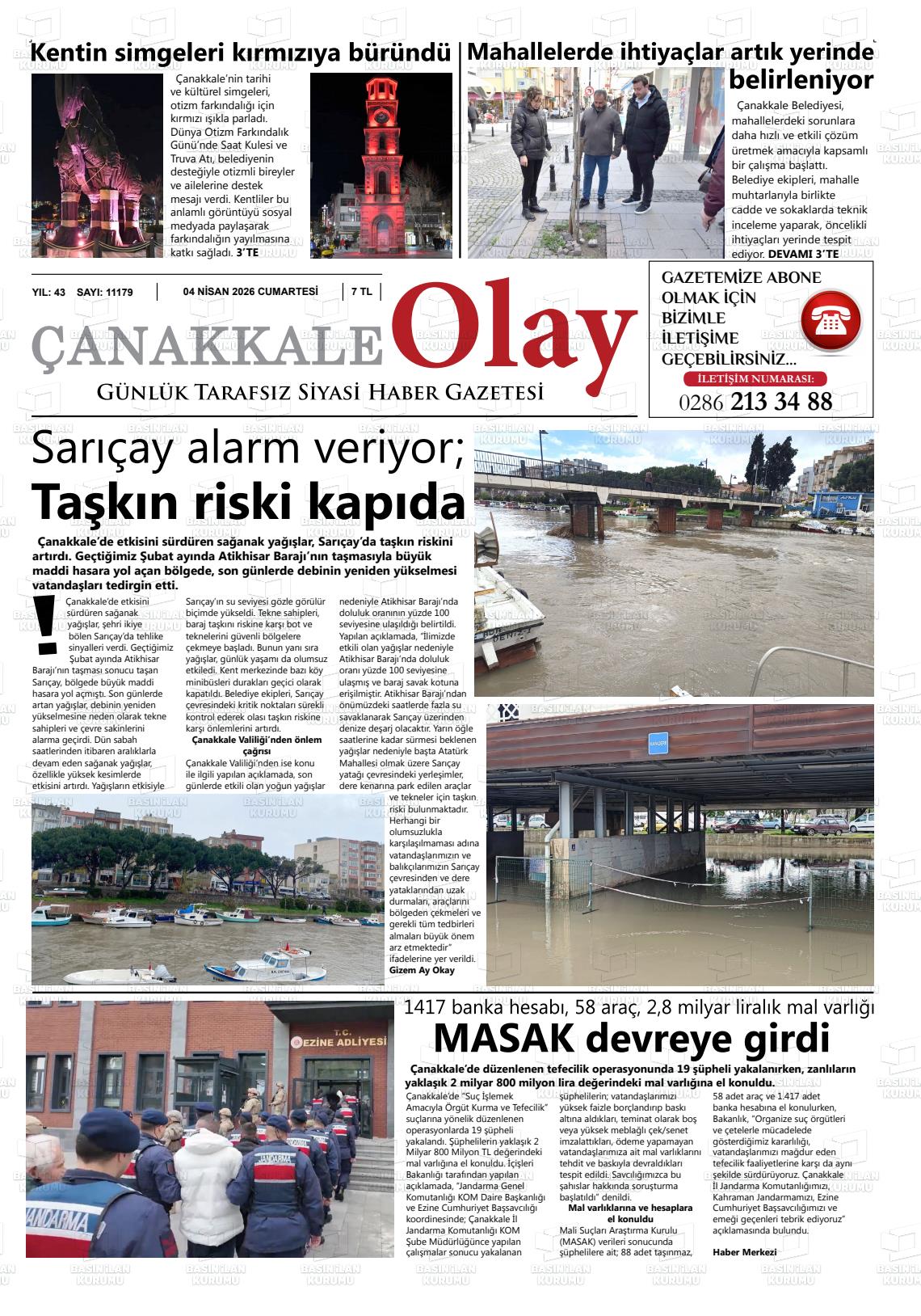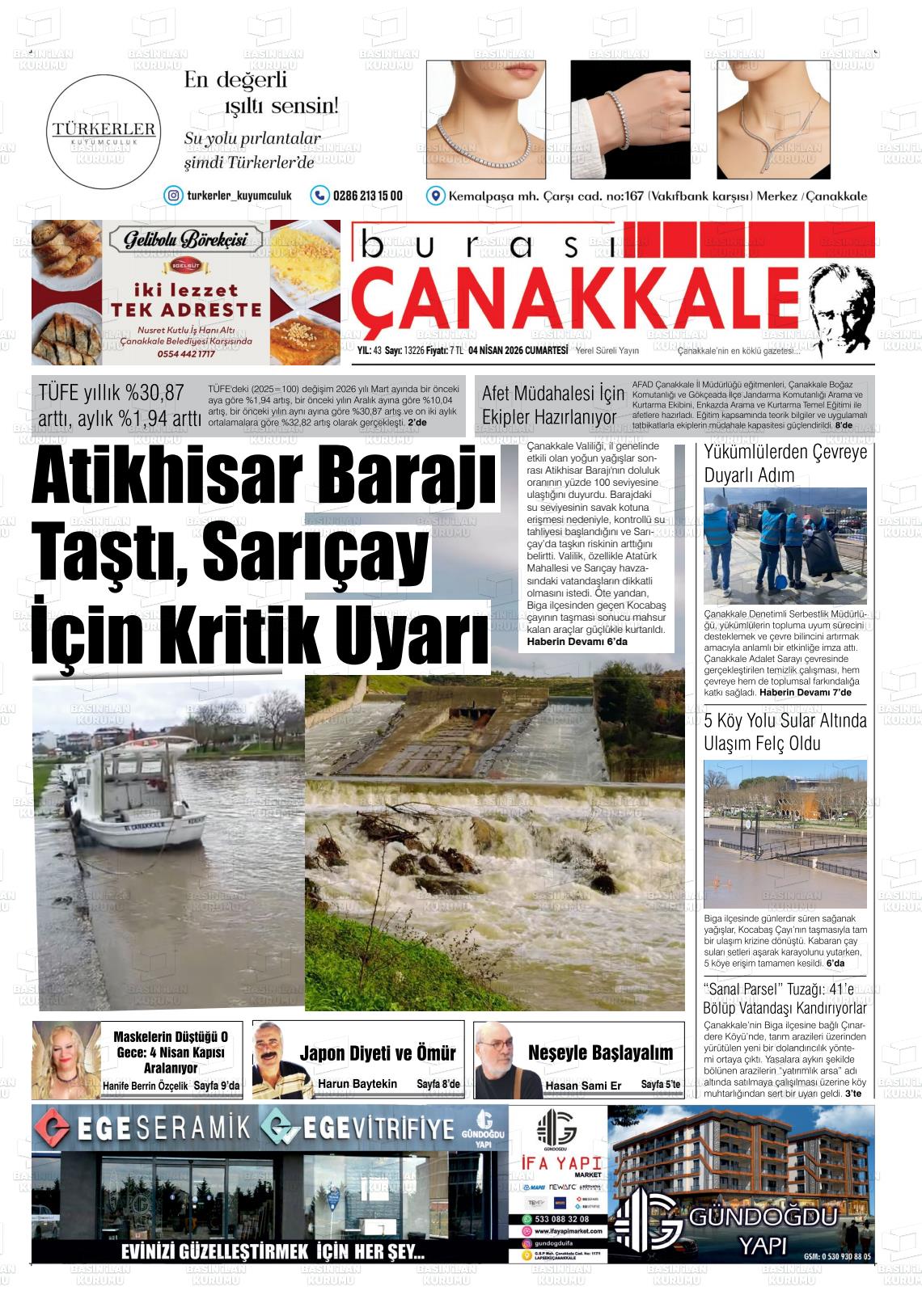 Çanakkale Yerel Gazeteleri 04 Nisan 2026, Cumartesi Günü Manşeti