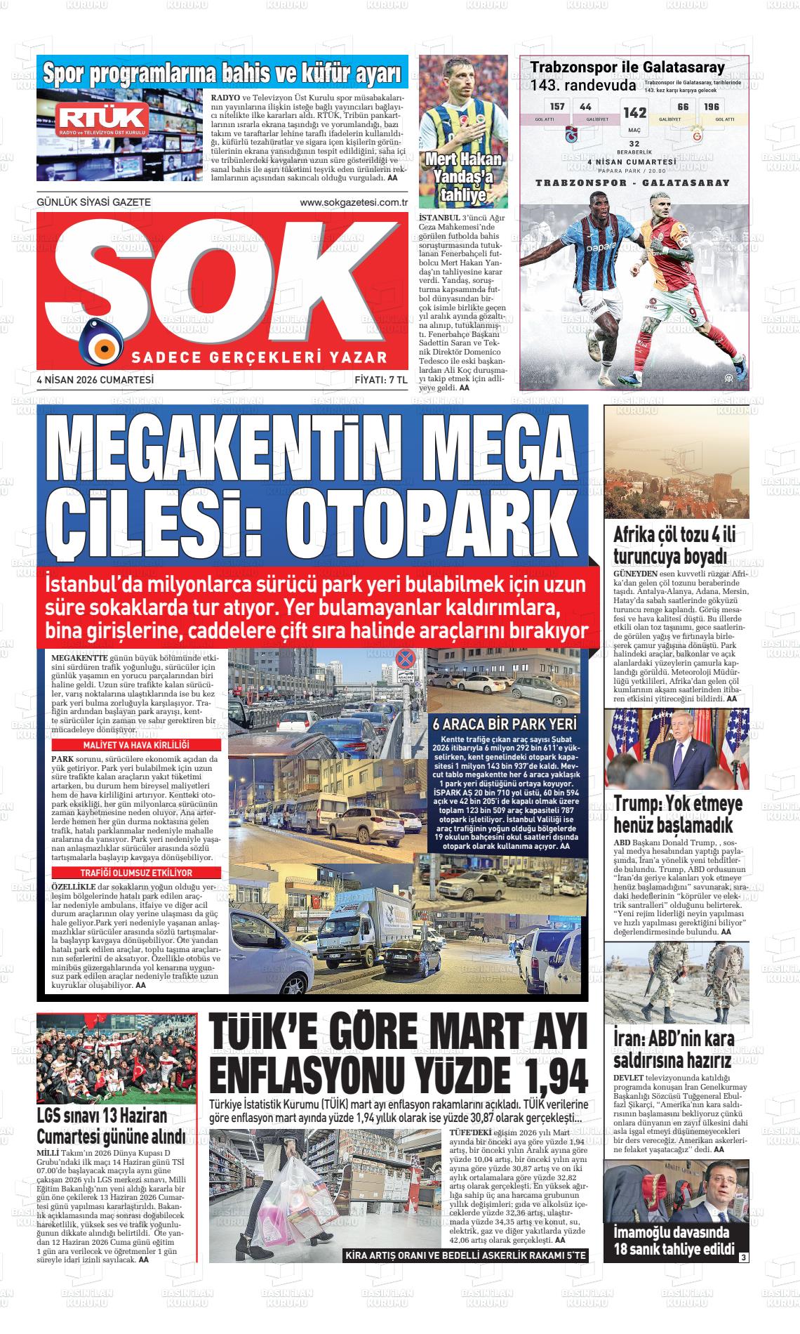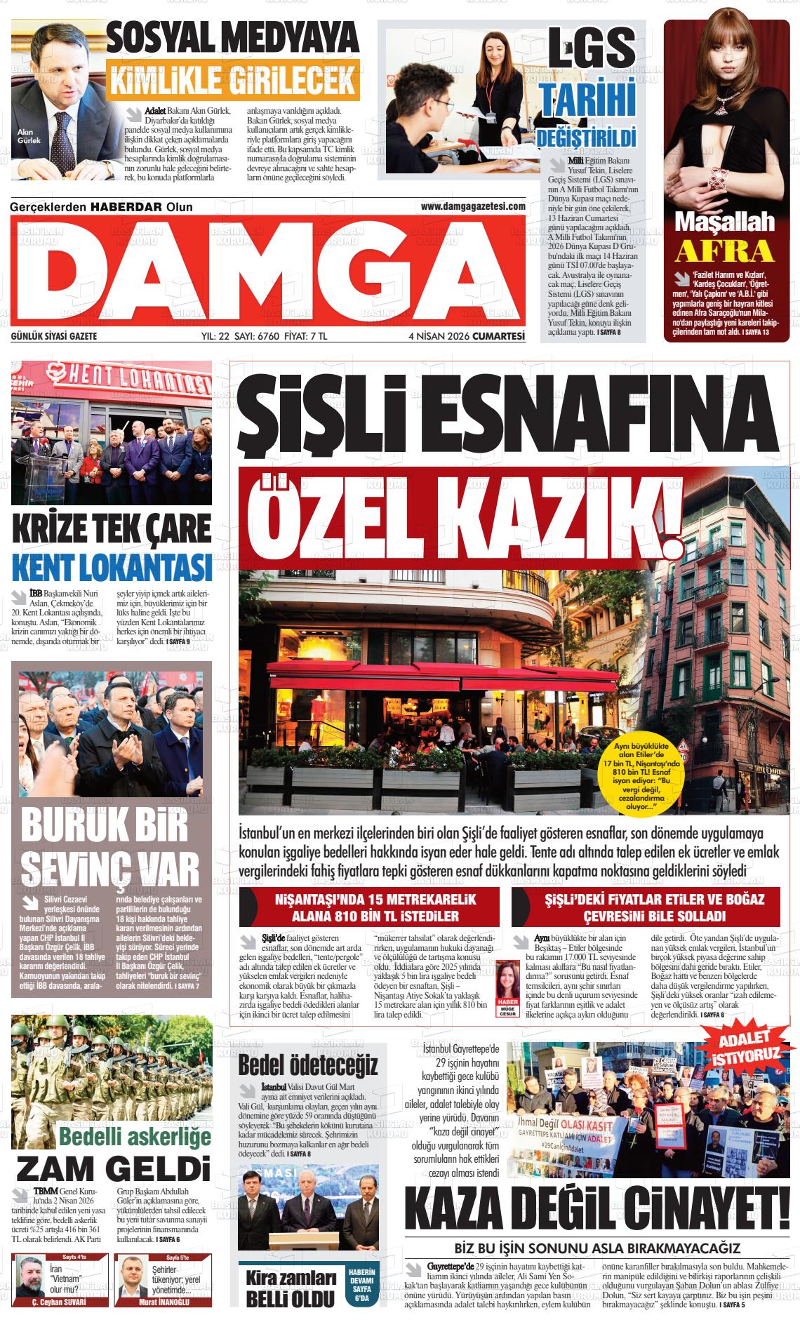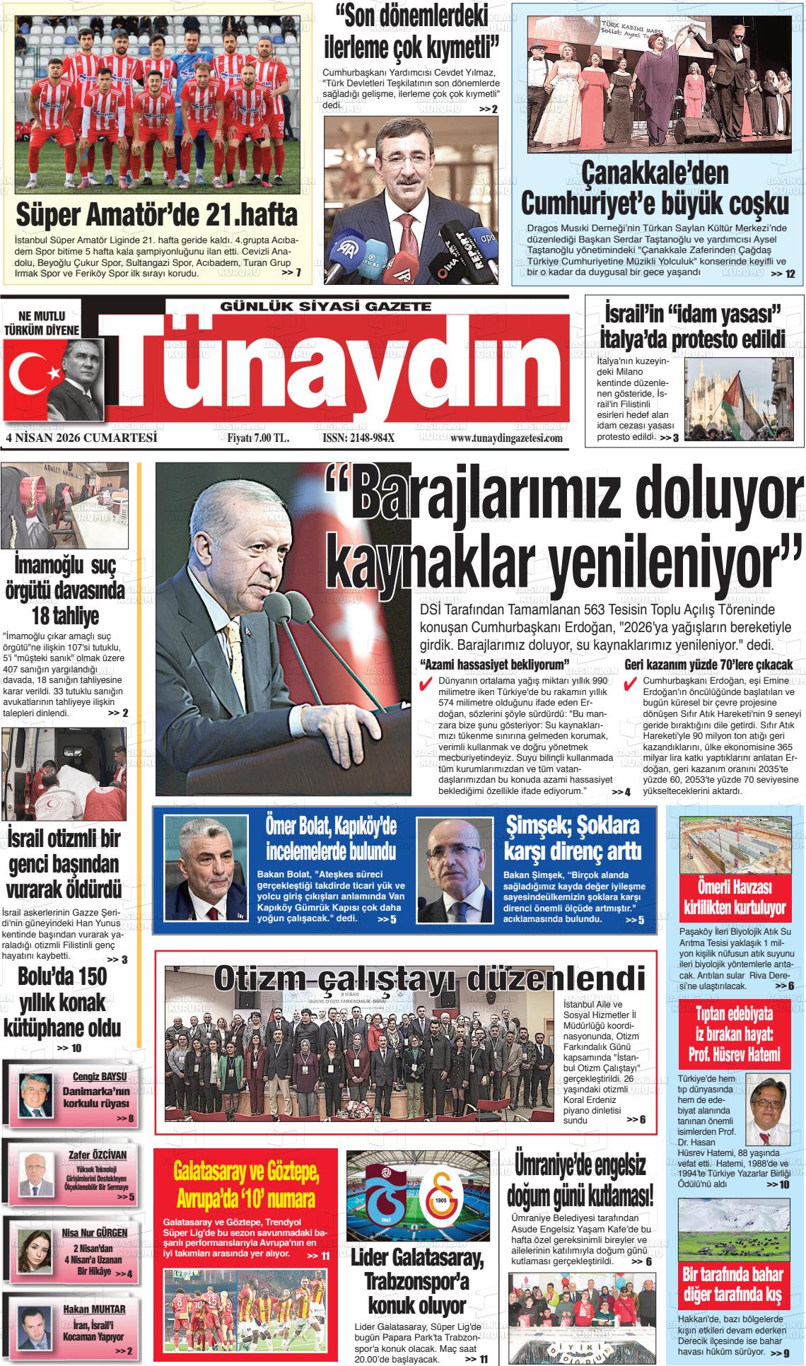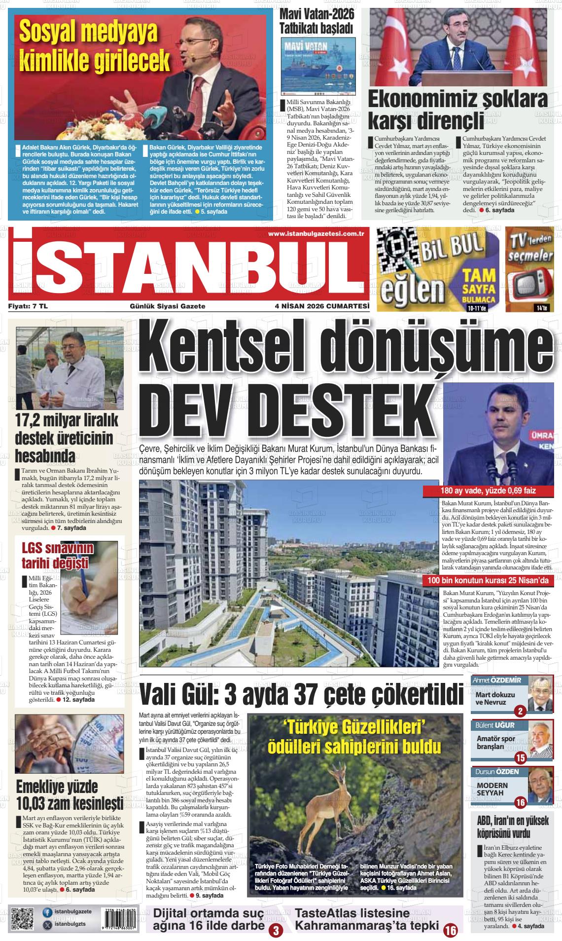 İstanbul Yerel Gazeteleri 04 Nisan 2026, Cumartesi Günü Manşeti