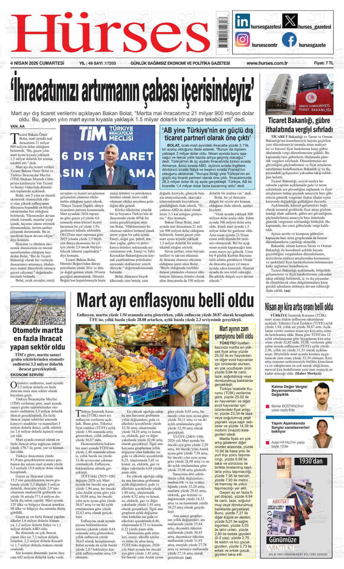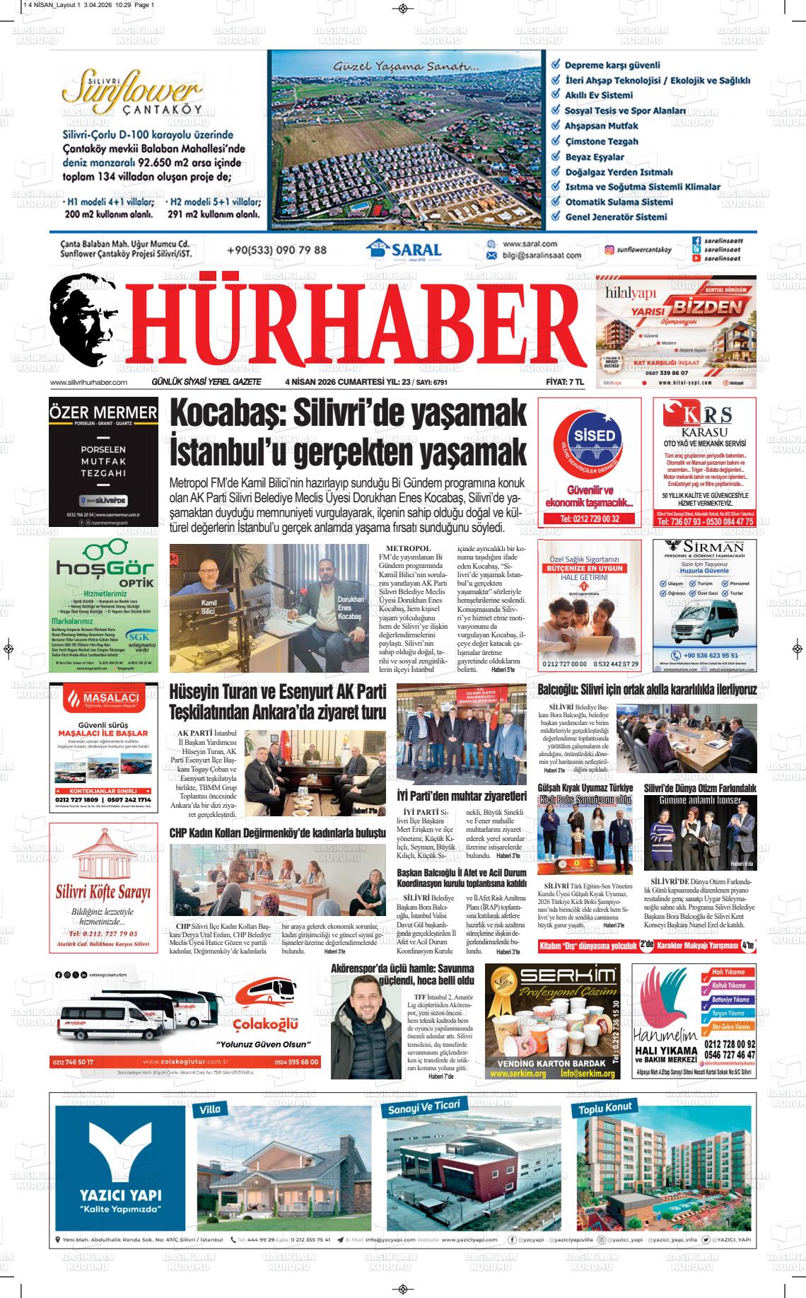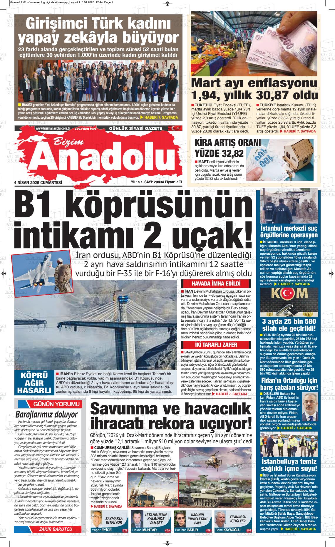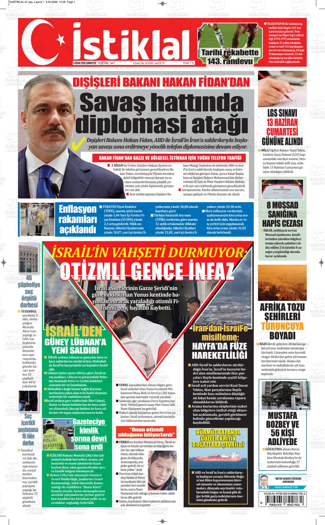 İstanbul Yerel Gazeteleri 04 Nisan 2026, Cumartesi Günü Manşeti
