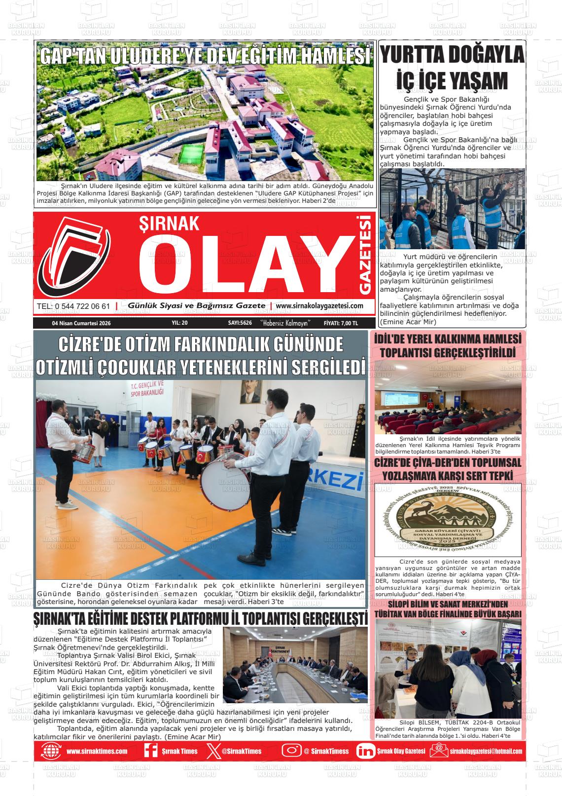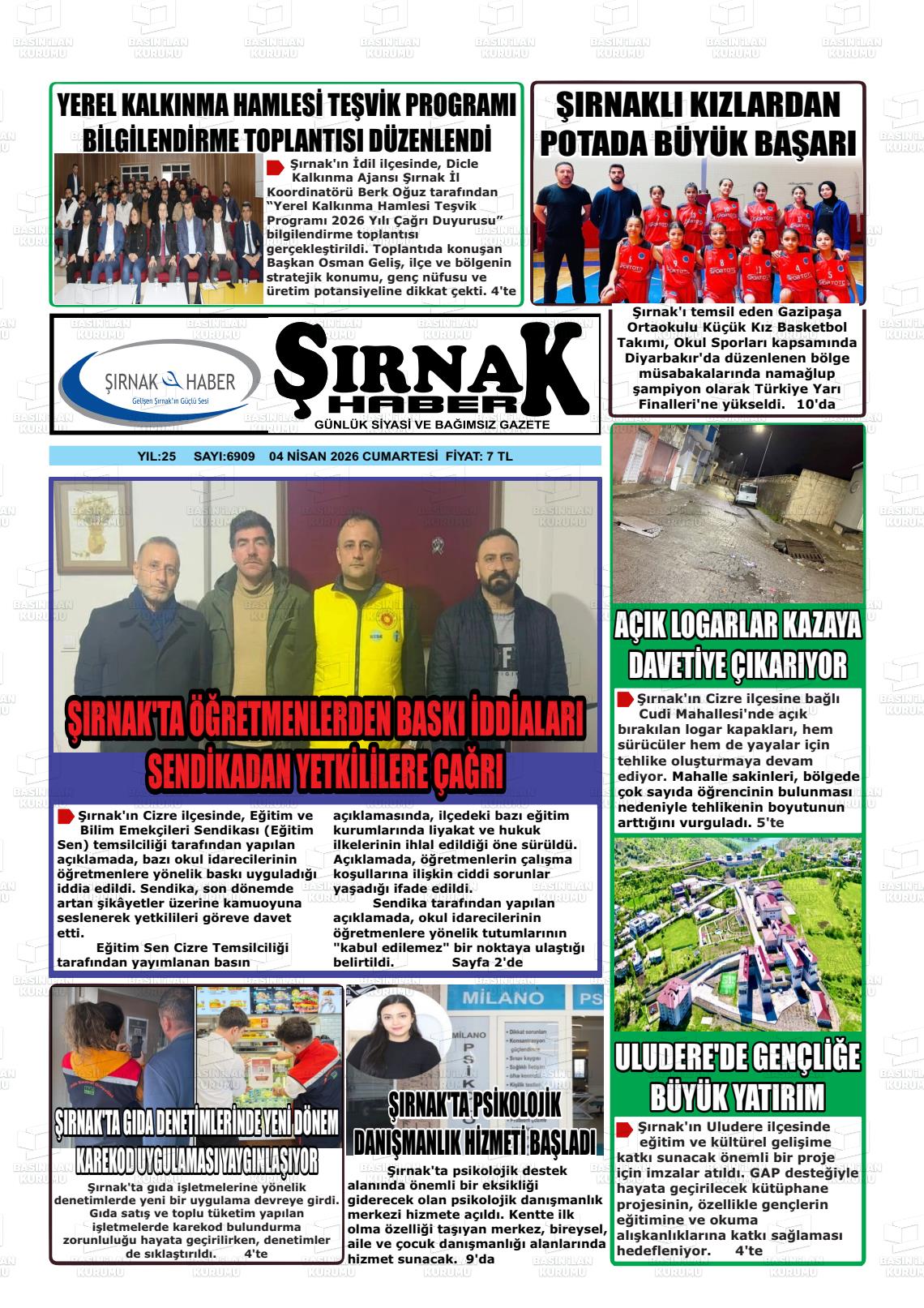 Şırnak Yerel Gazeteleri 04 Nisan 2026, Cumartesi Günü Manşeti