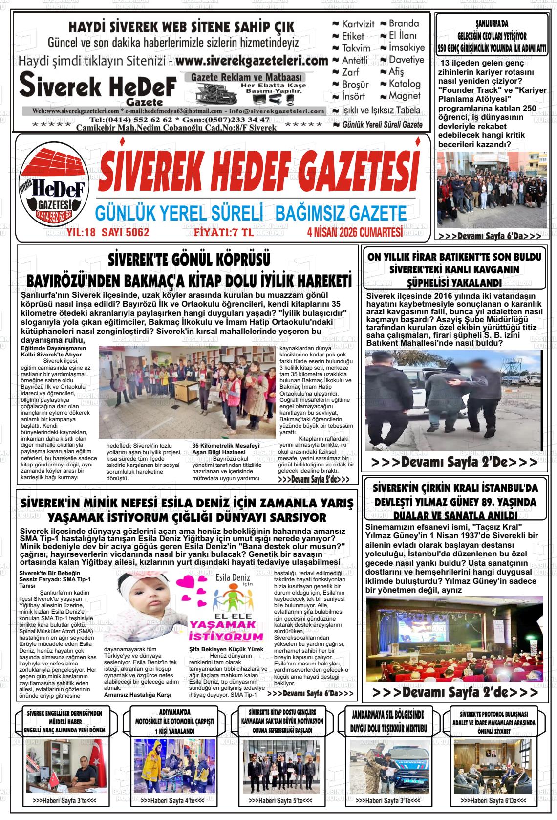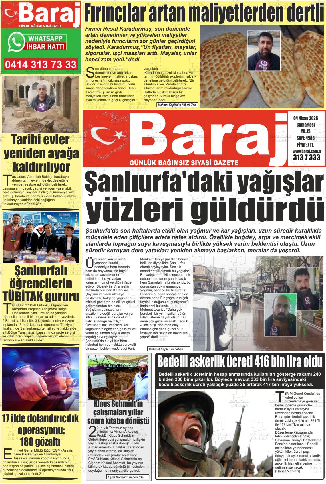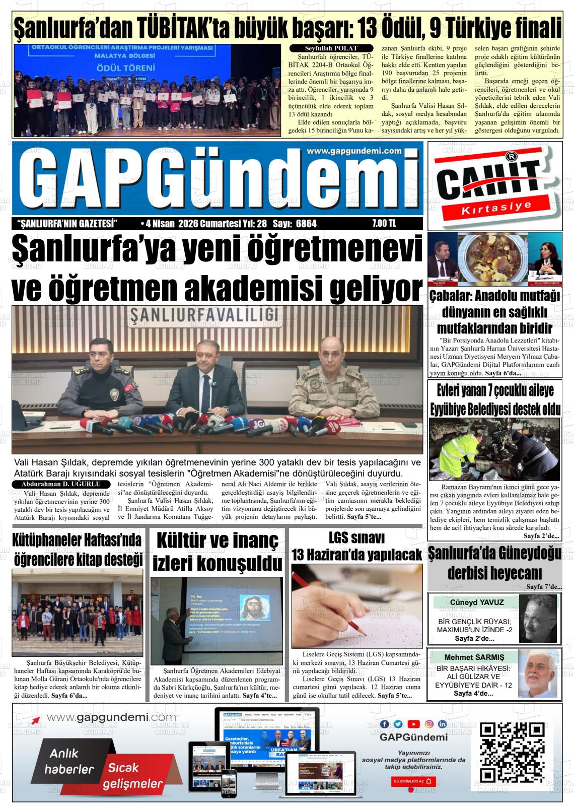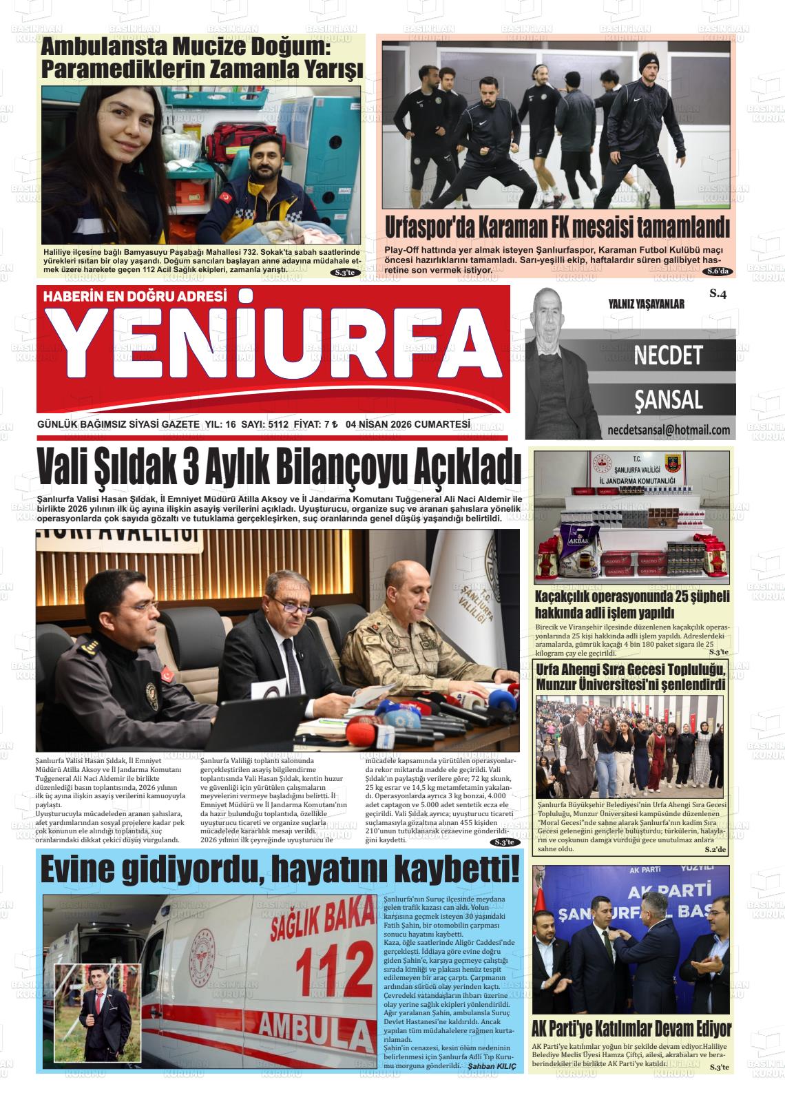 Şanlıurfa Yerel Gazeteleri 04 Nisan 2026, Cumartesi Günü Manşeti