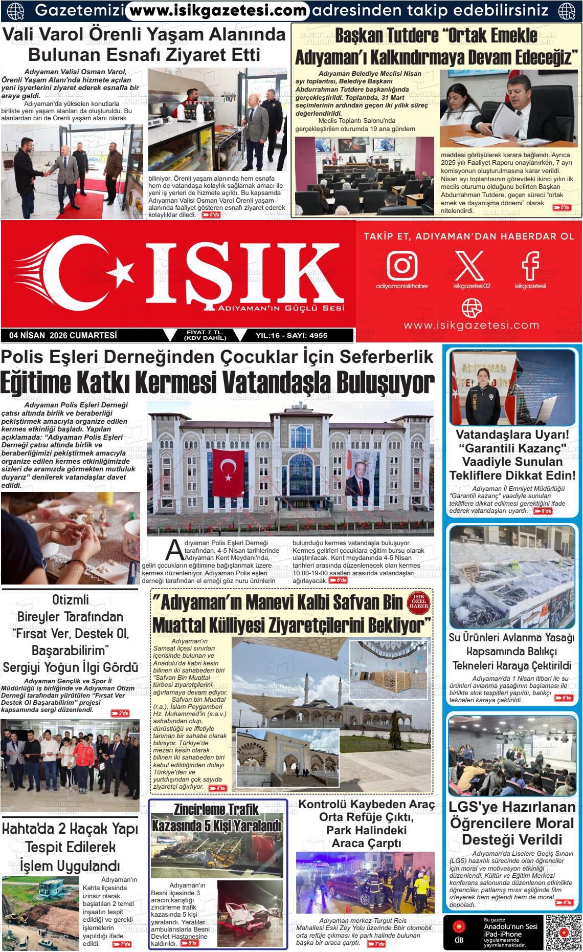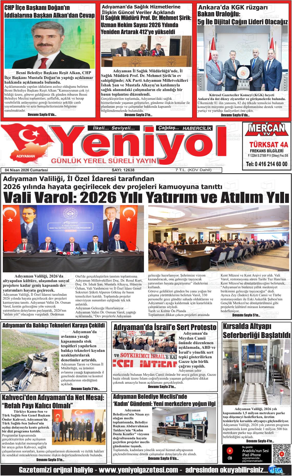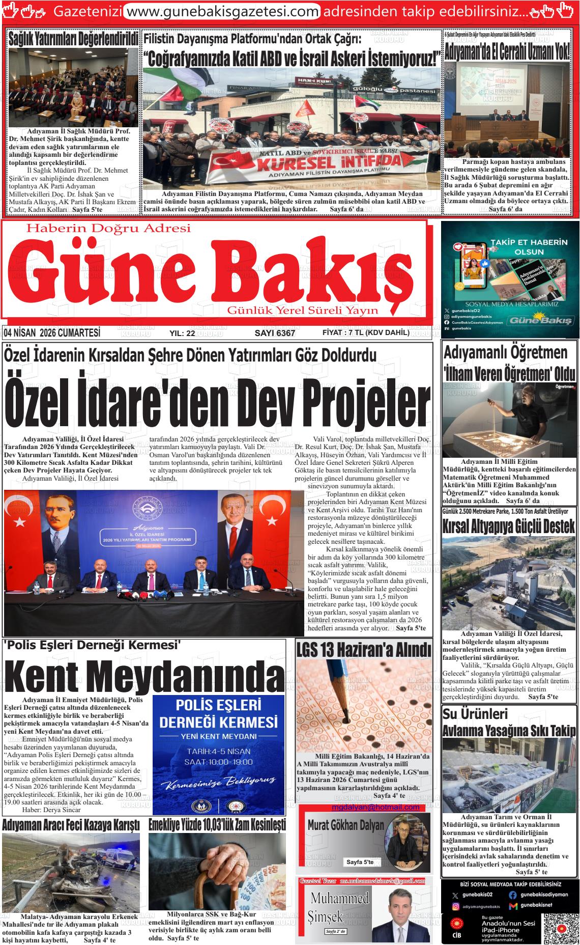 Adıyaman Yerel Gazeteleri 04 Nisan 2026, Cumartesi Günü Manşeti