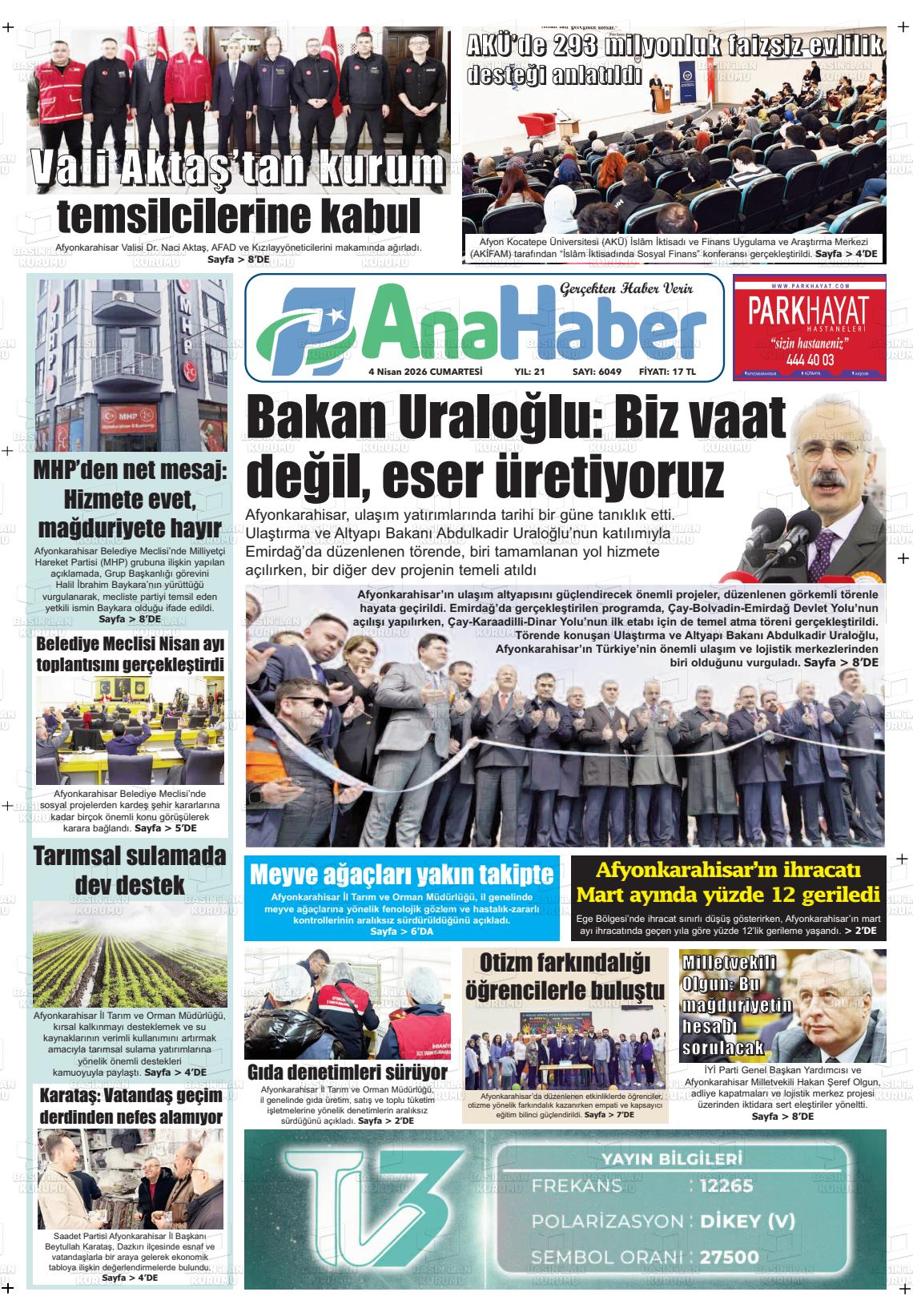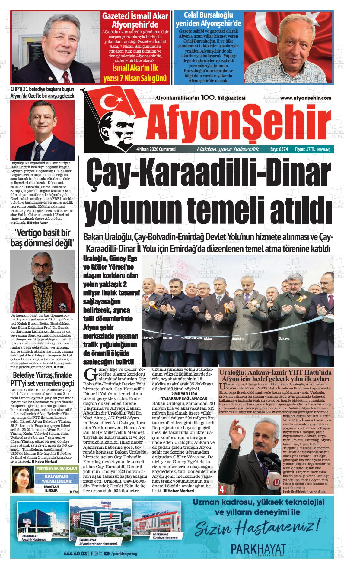 Afyonkarahİsar Yerel Gazeteleri 04 Nisan 2026, Cumartesi Günü Manşeti