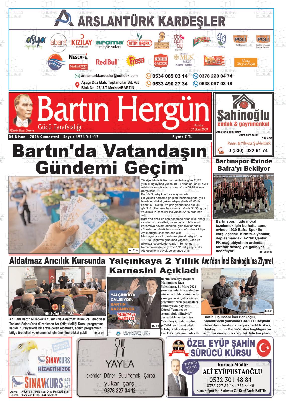 Bartın Yerel Gazeteleri 04 Nisan 2026, Cumartesi Günü Manşeti