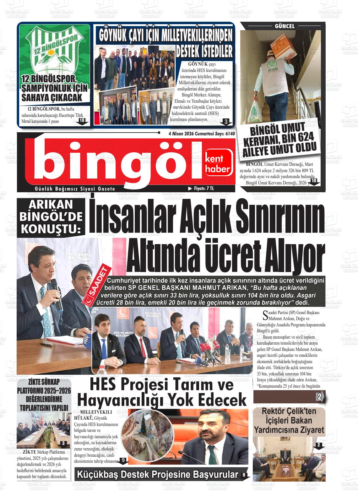 Bİngöl Yerel Gazeteleri 04 Nisan 2026, Cumartesi Günü Manşeti