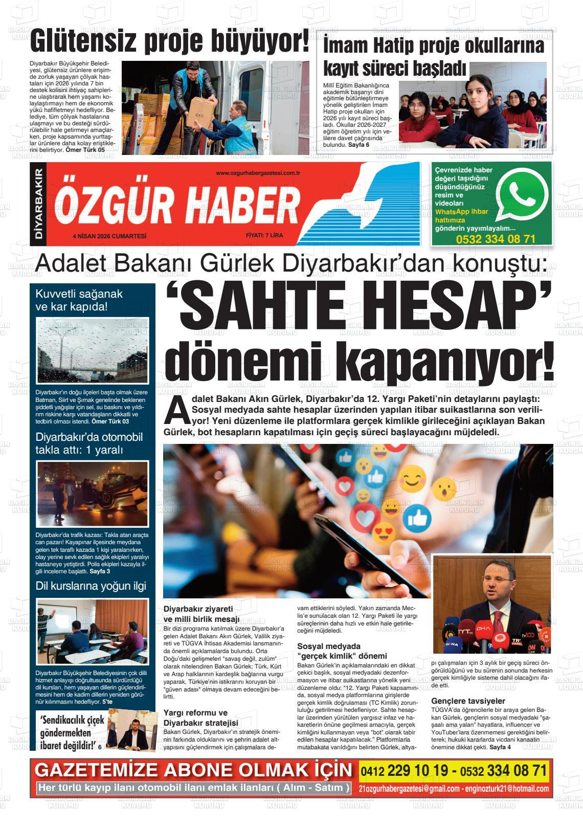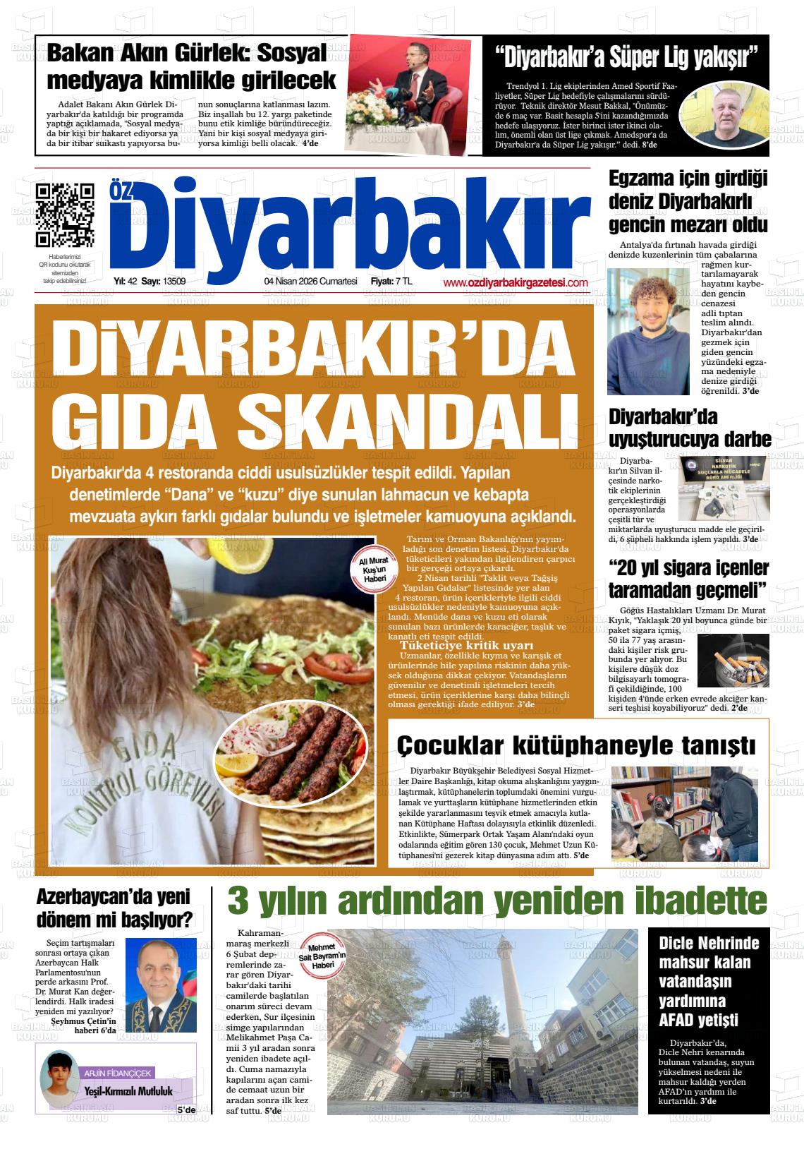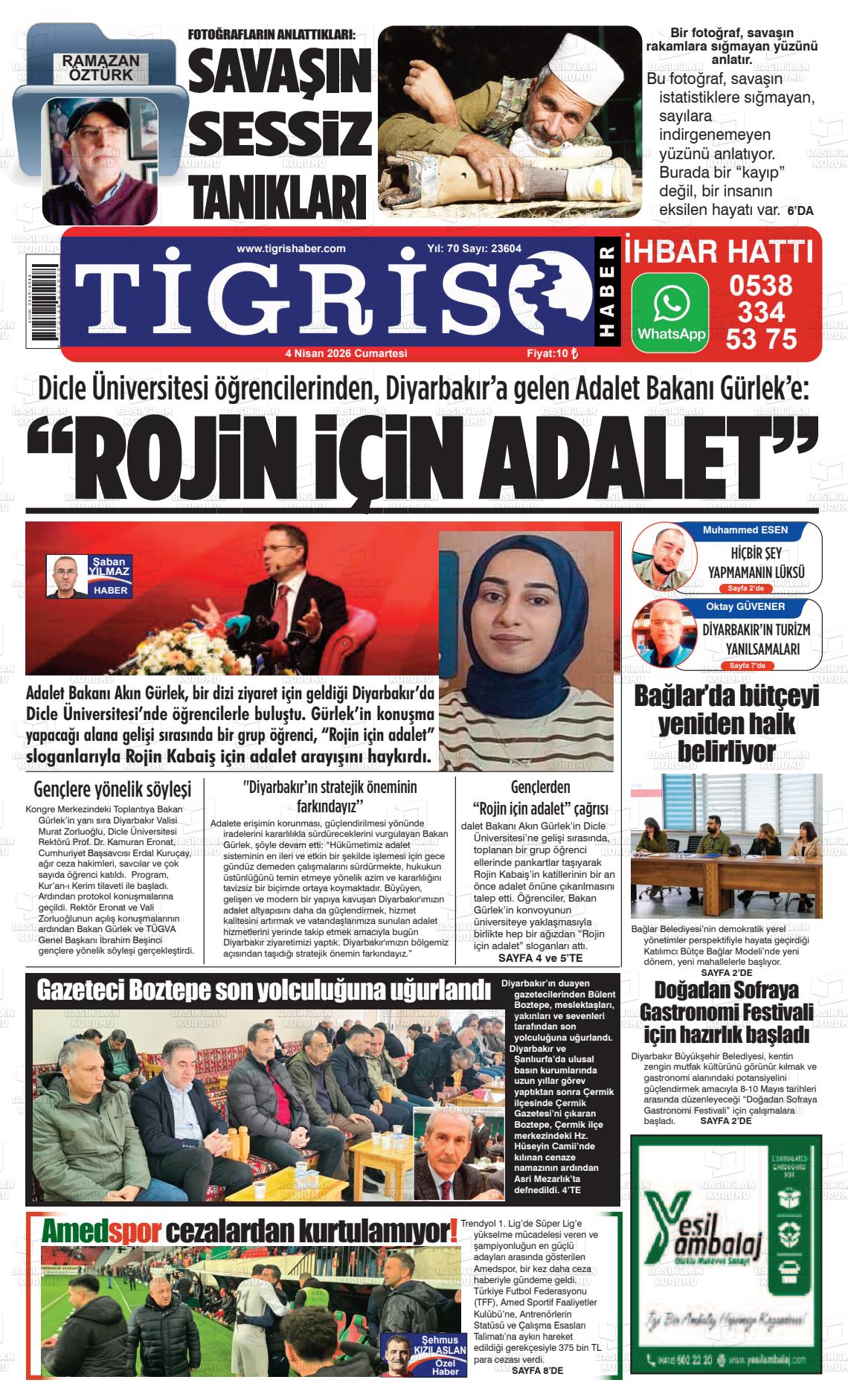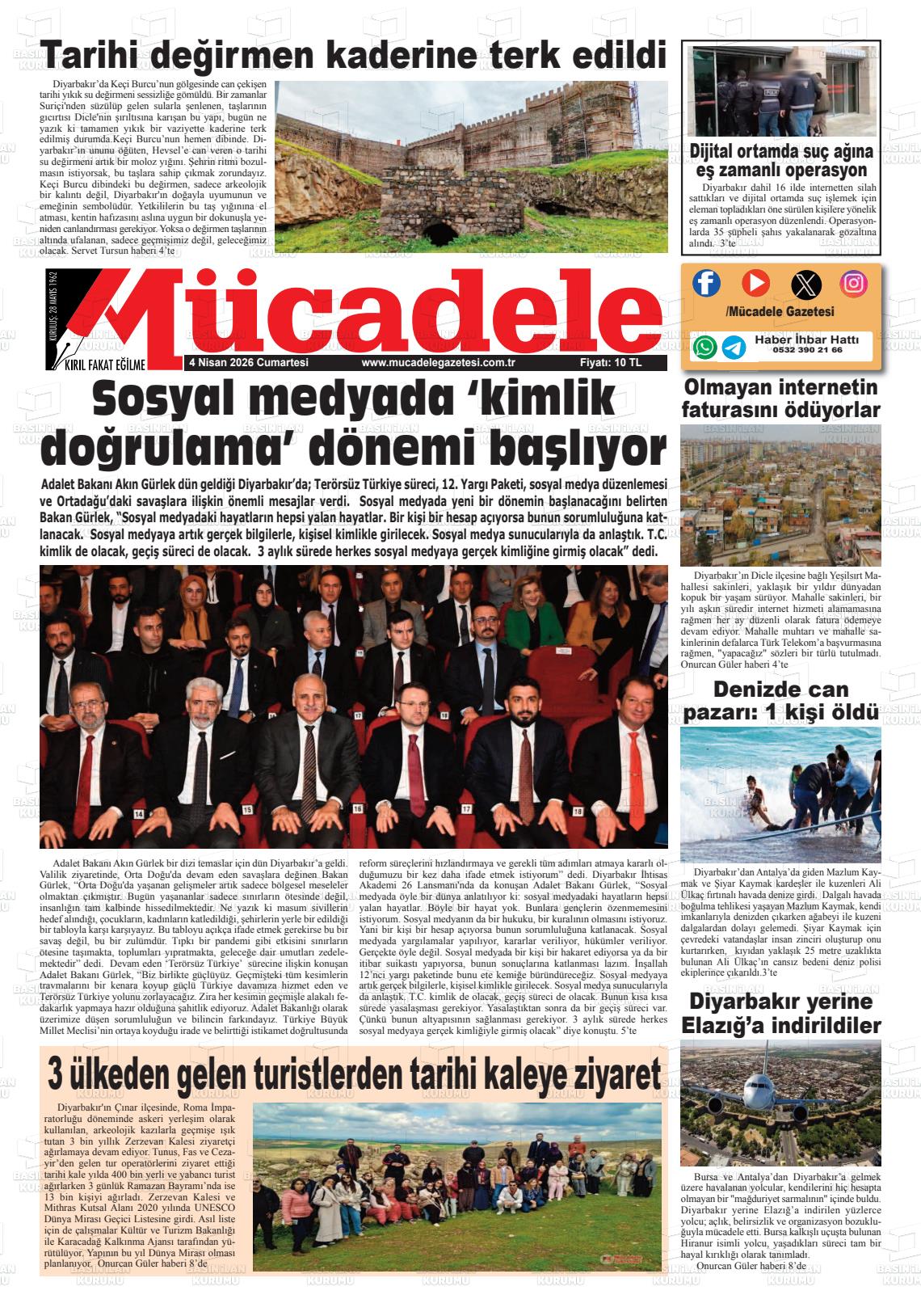 Dİyarbakır Yerel Gazeteleri 04 Nisan 2026, Cumartesi Günü Manşeti
