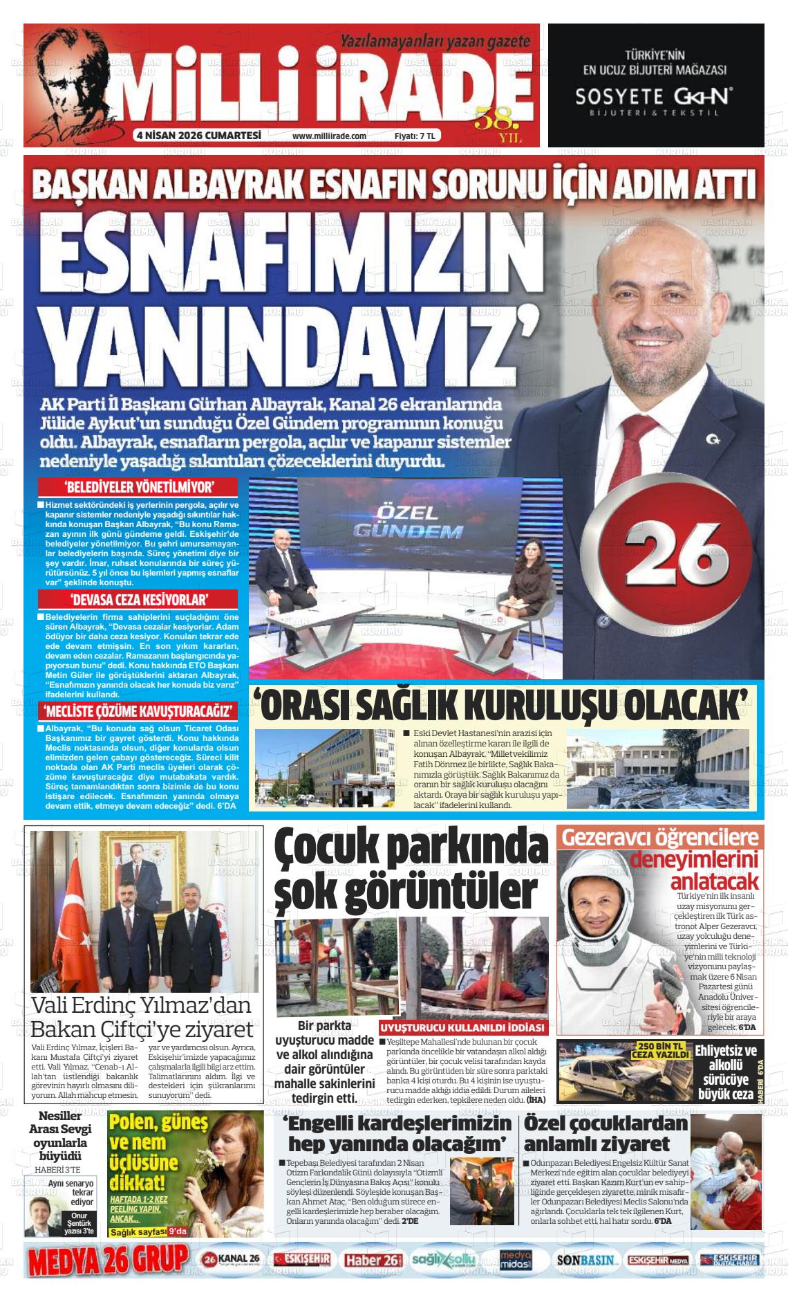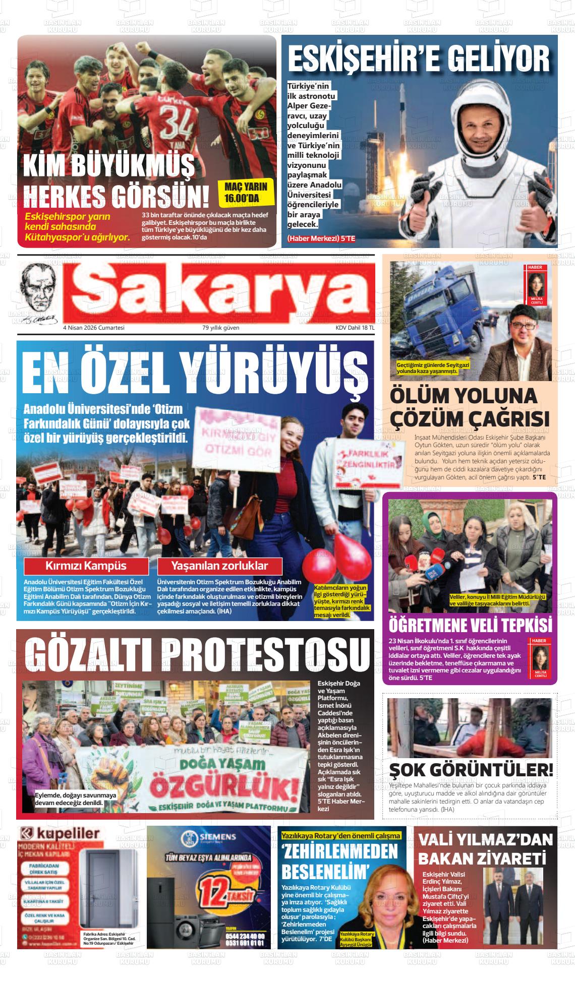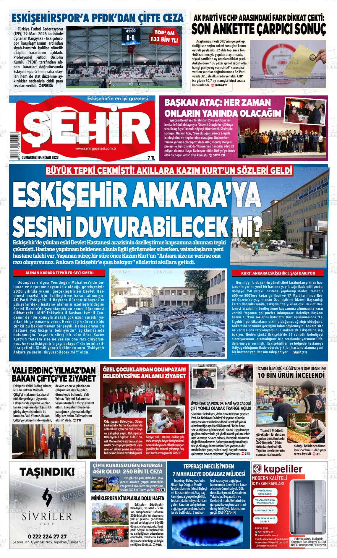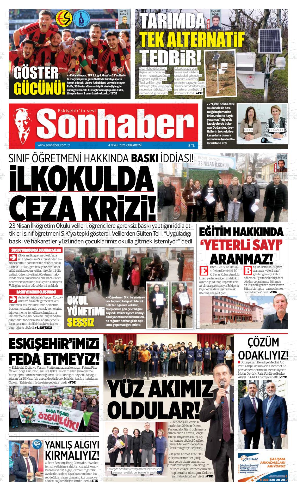 Eskİşehİr Yerel Gazeteleri 04 Nisan 2026, Cumartesi Günü Manşeti