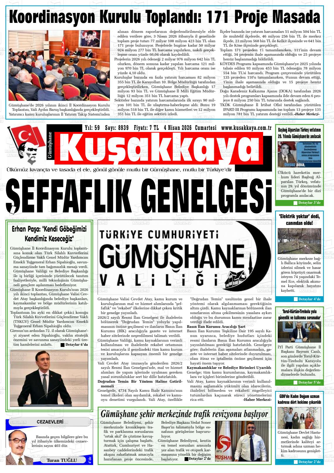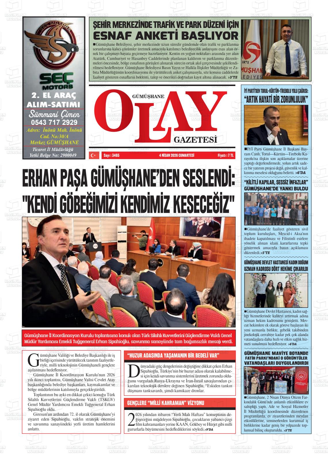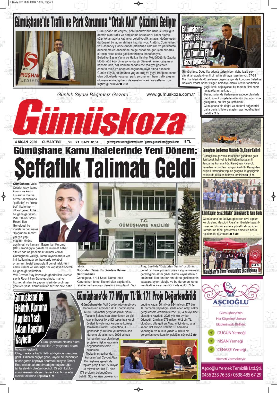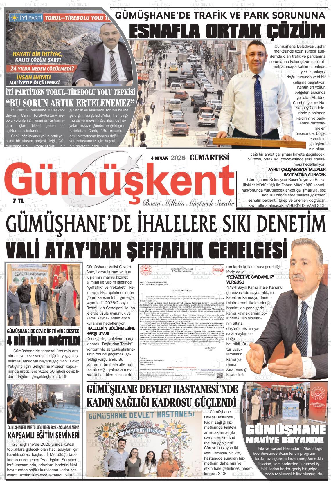 Gümüşhane Yerel Gazeteleri 04 Nisan 2026, Cumartesi Günü Manşeti