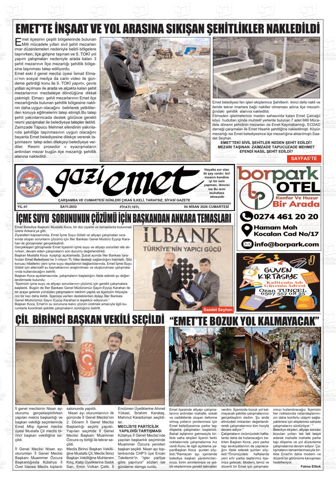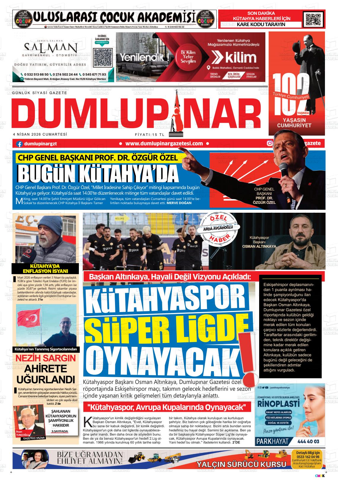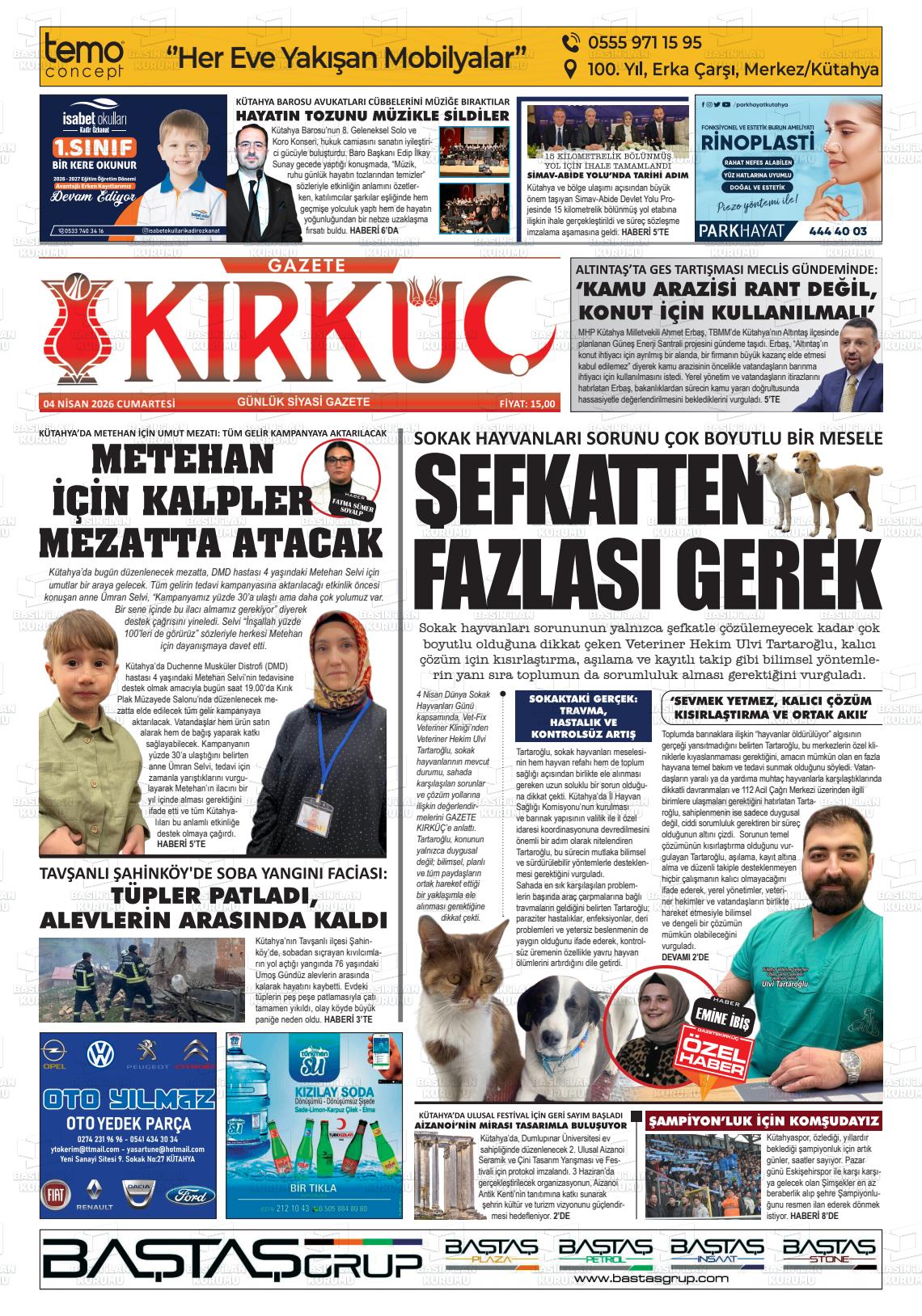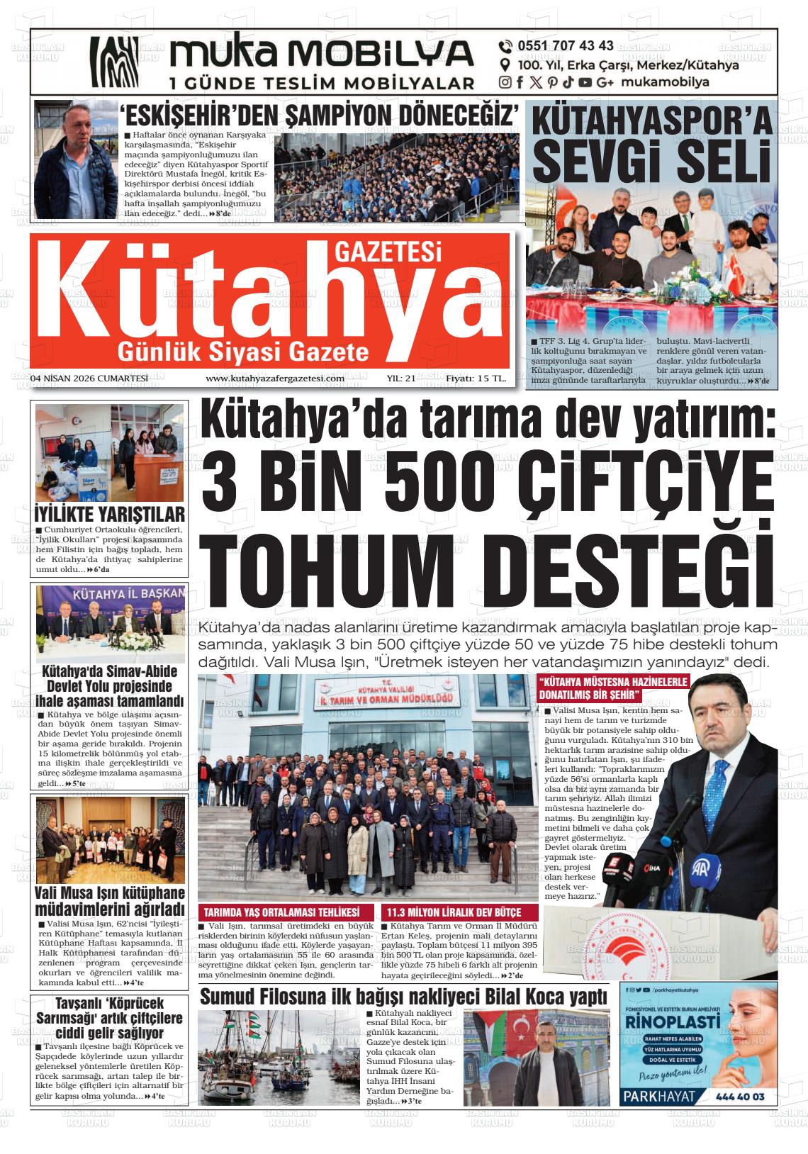 Kütahya Yerel Gazeteleri 04 Nisan 2026, Cumartesi Günü Manşeti