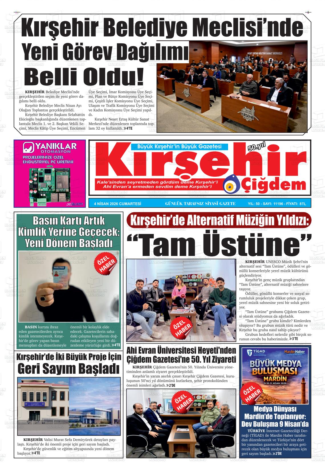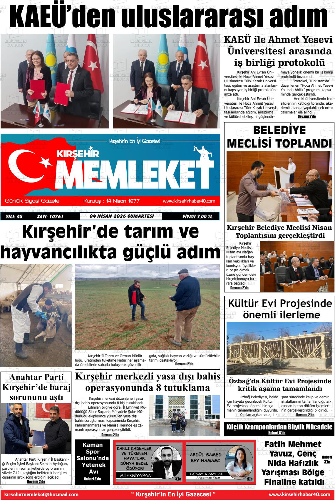 Kırşehİr Yerel Gazeteleri 04 Nisan 2026, Cumartesi Günü Manşeti