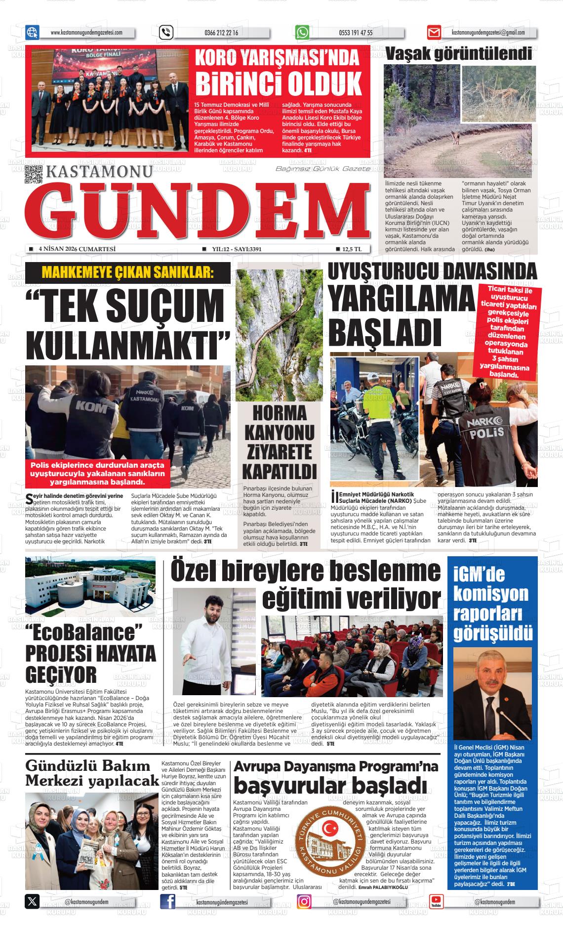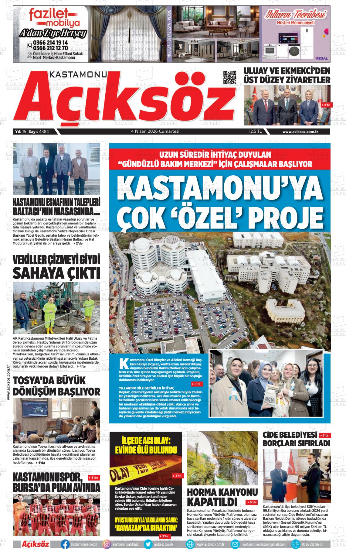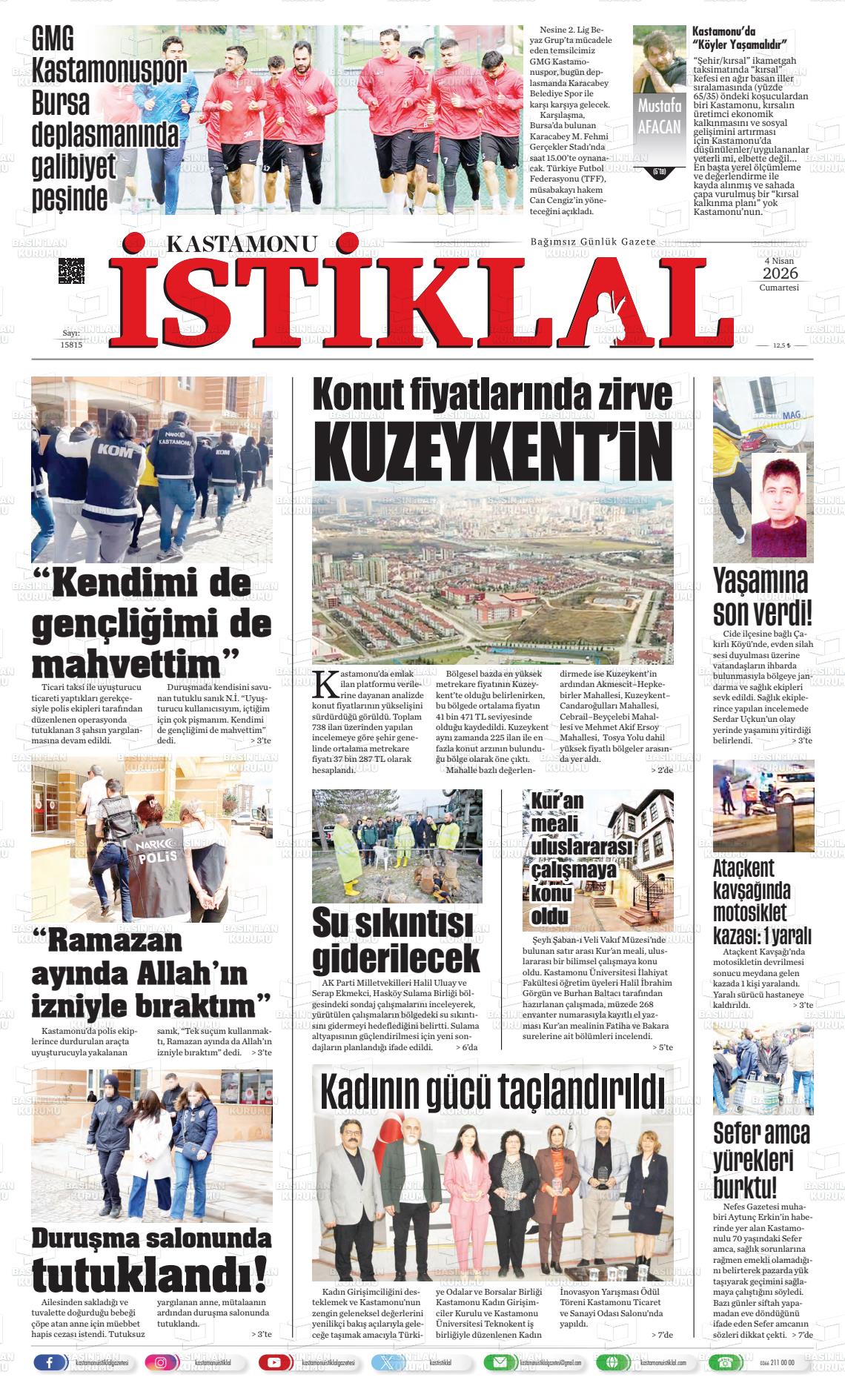 Kastamonu Yerel Gazeteleri 04 Nisan 2026, Cumartesi Günü Manşeti