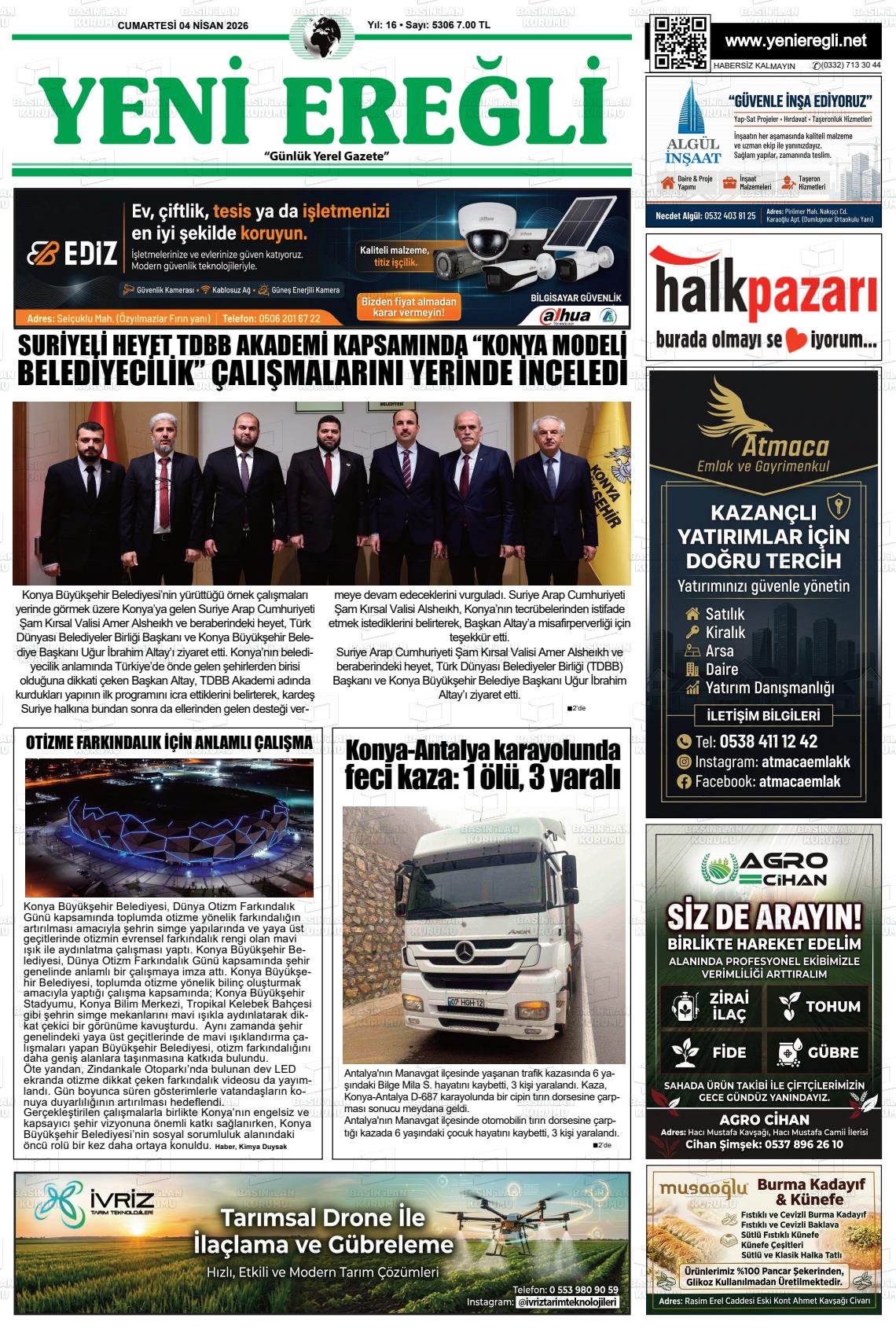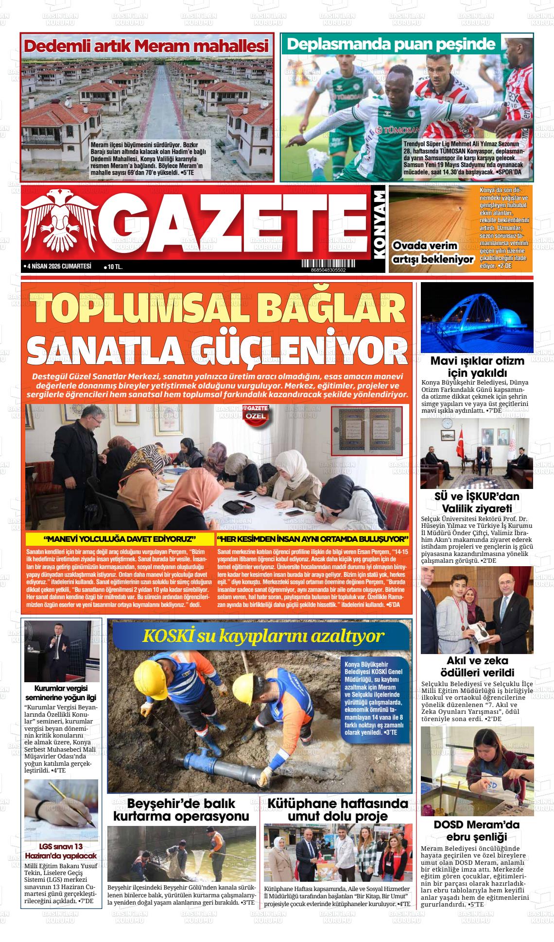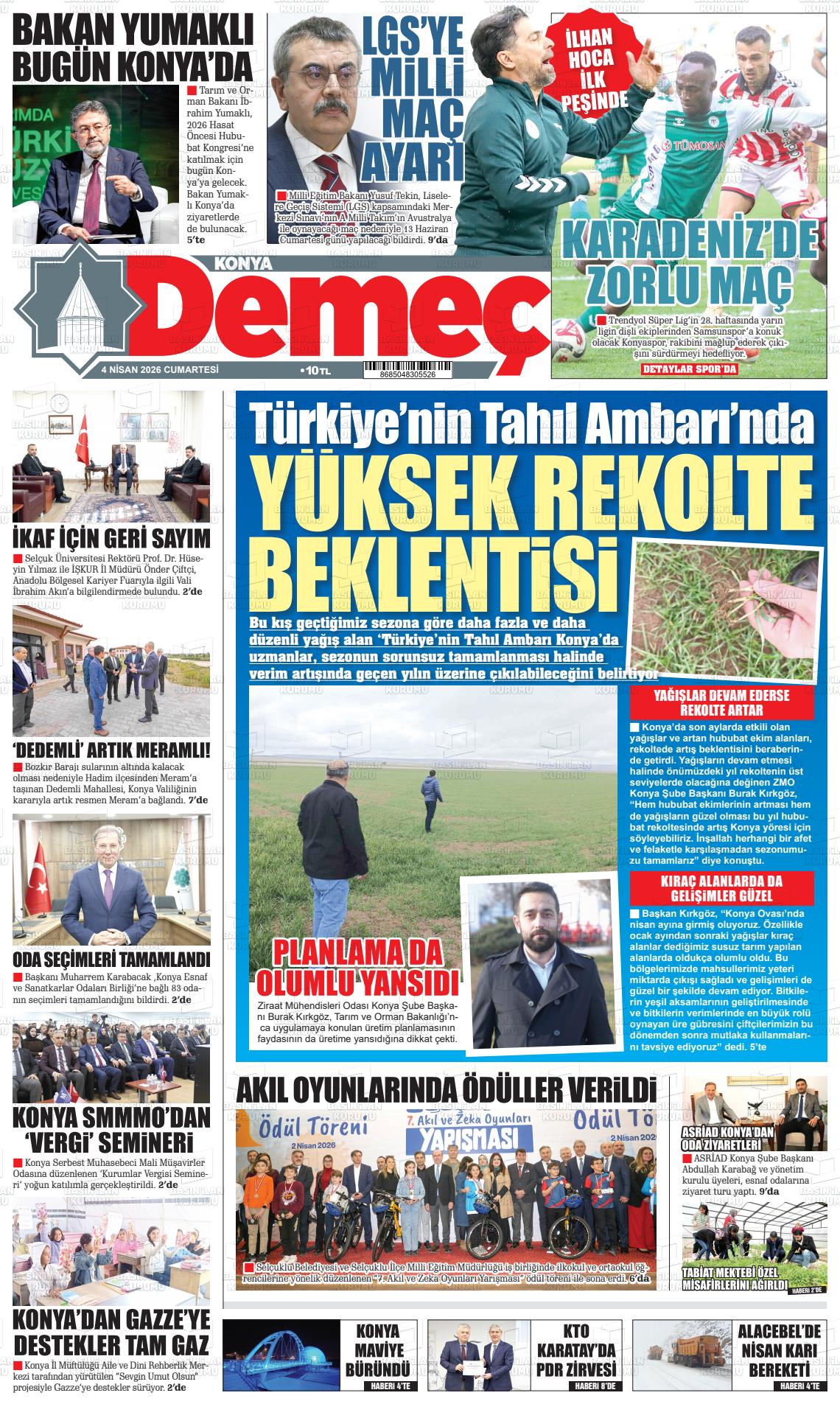 Konya Yerel Gazeteleri 04 Nisan 2026, Cumartesi Günü Manşeti