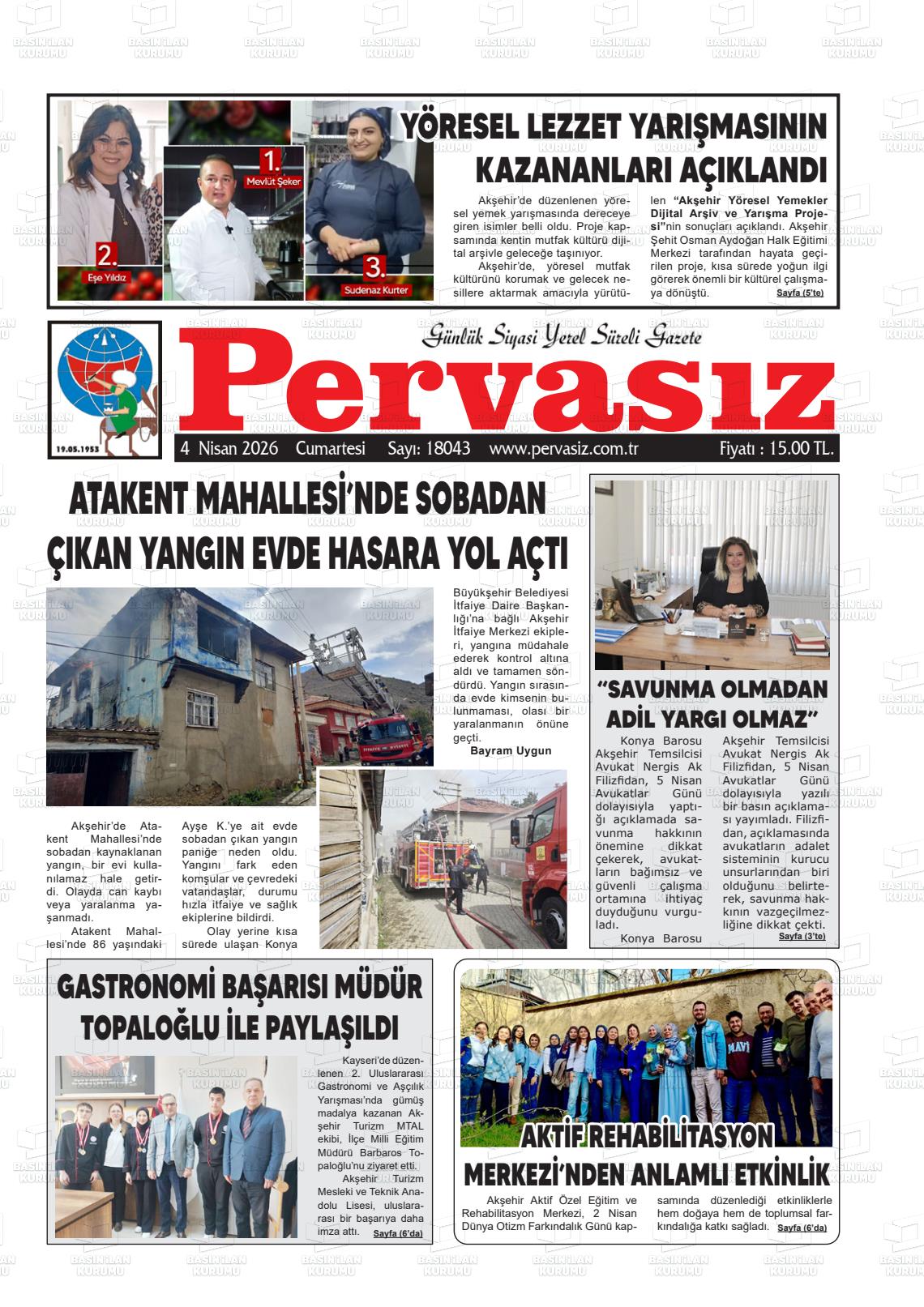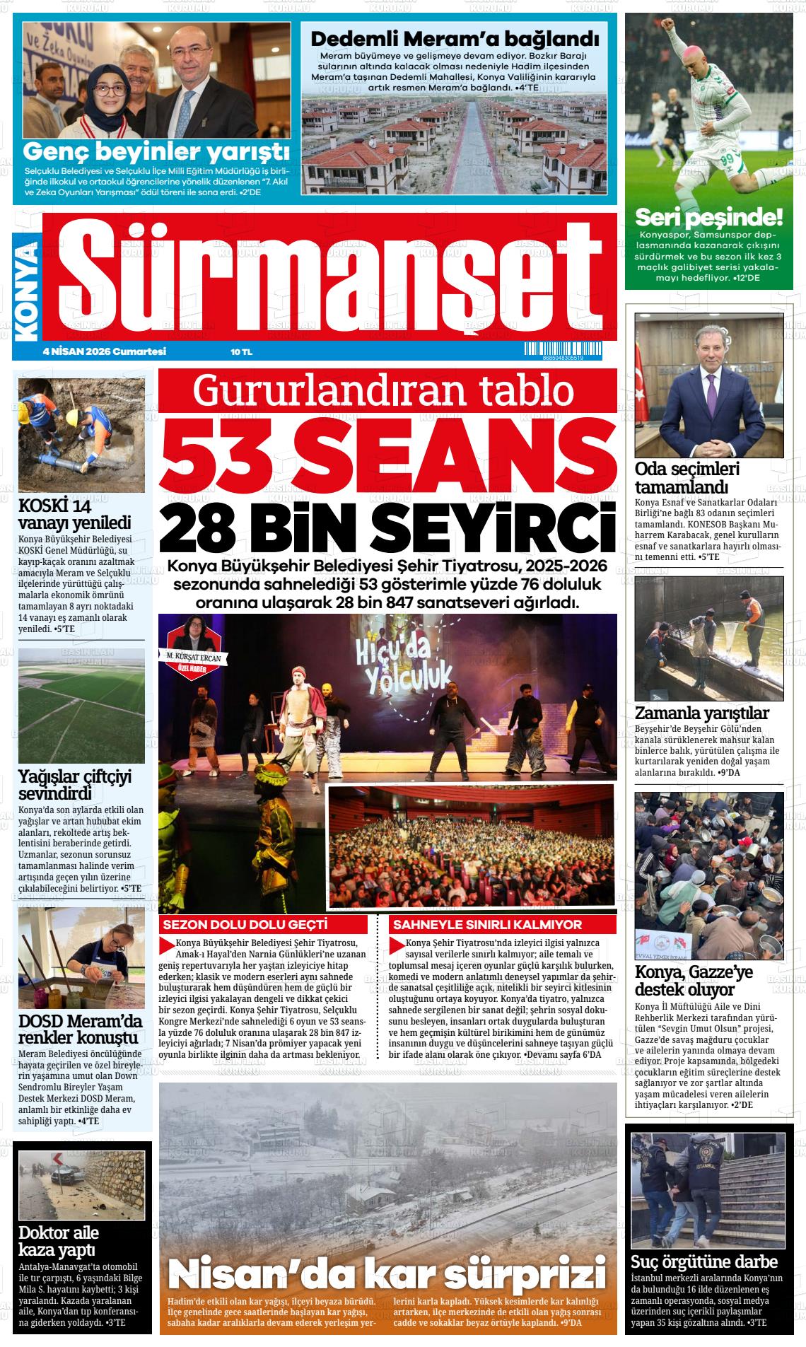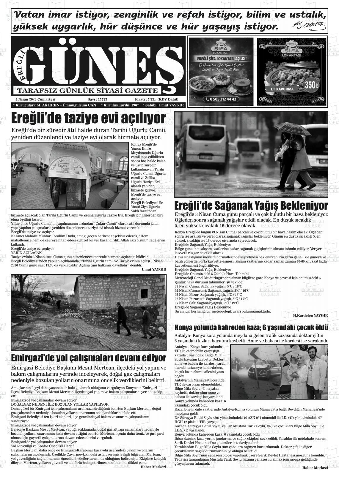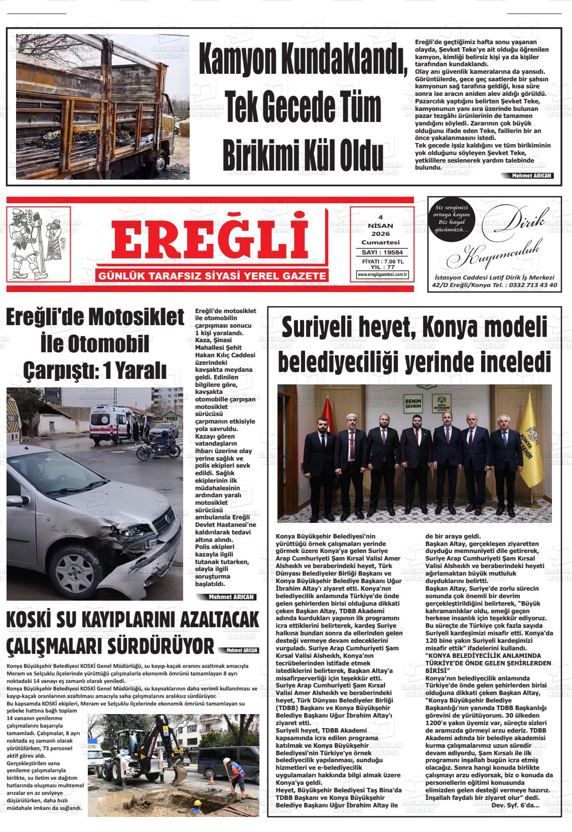 Konya Yerel Gazeteleri 04 Nisan 2026, Cumartesi Günü Manşeti