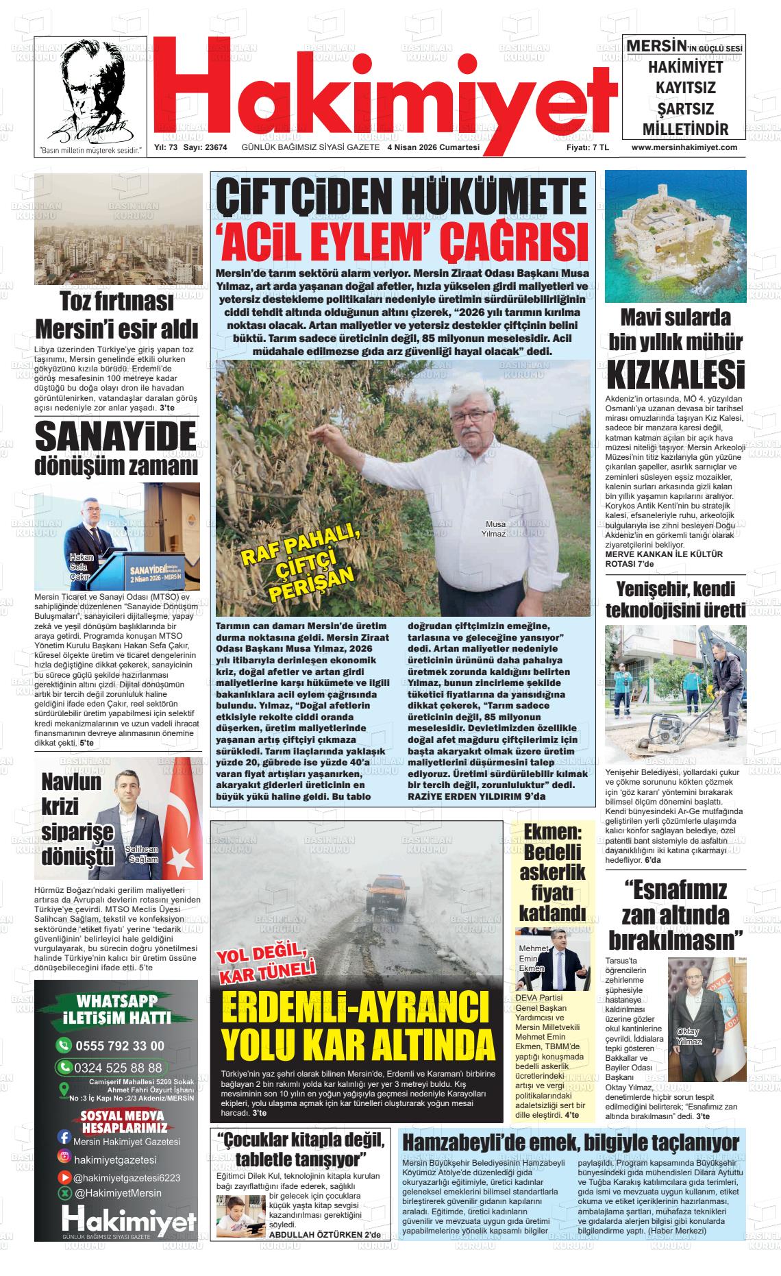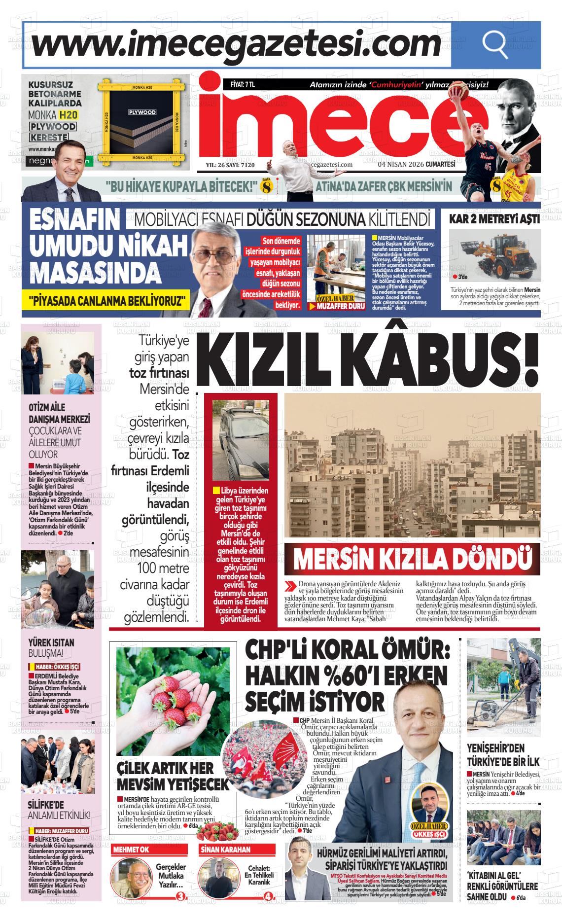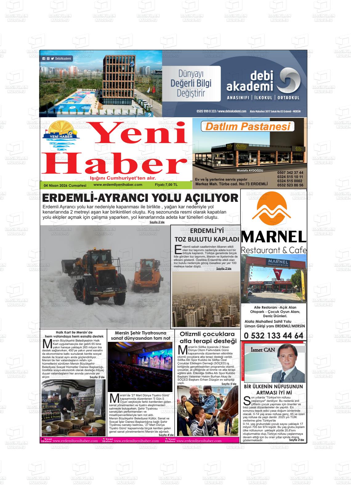 Mersİn Yerel Gazeteleri 04 Nisan 2026, Cumartesi Günü Manşeti