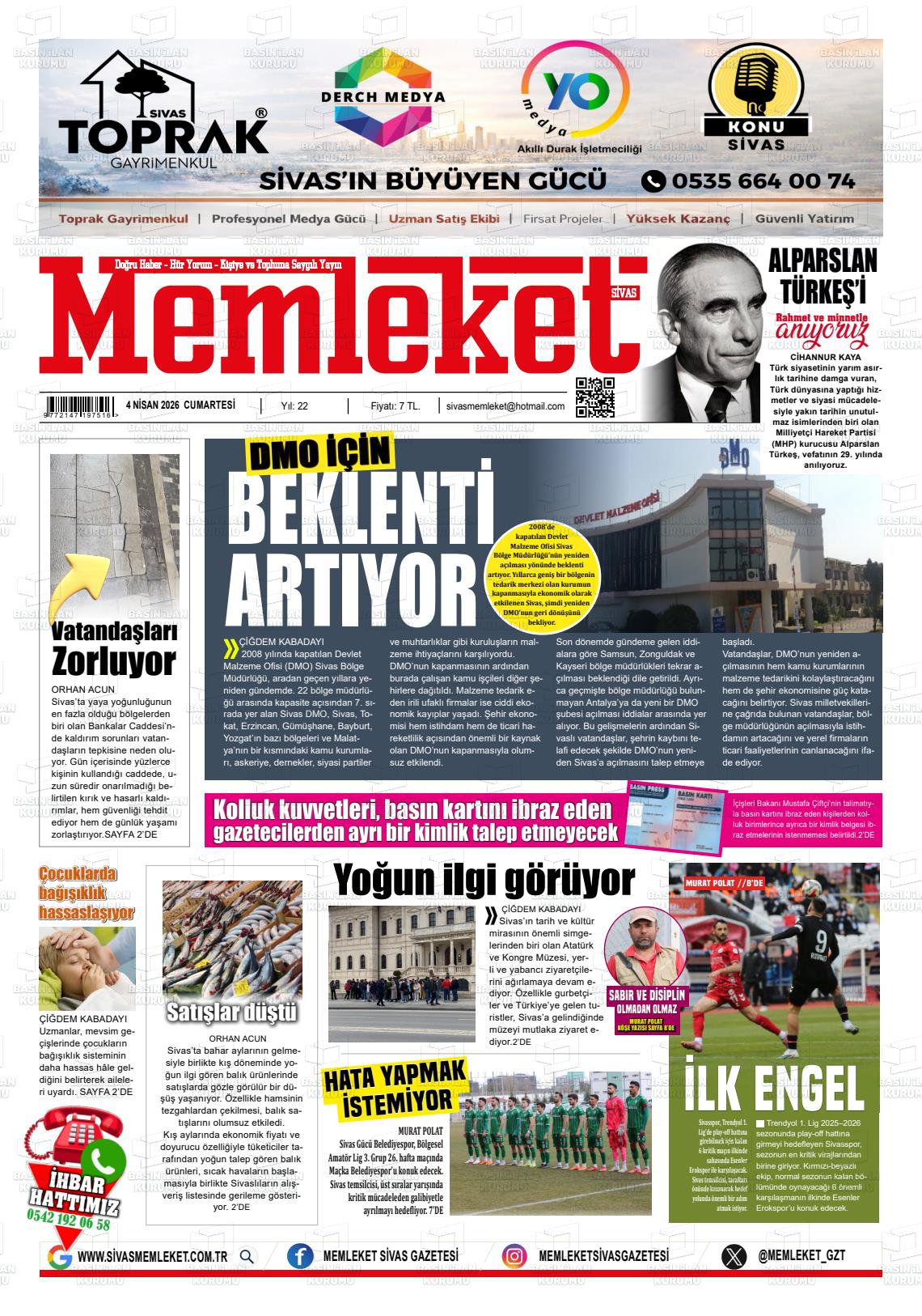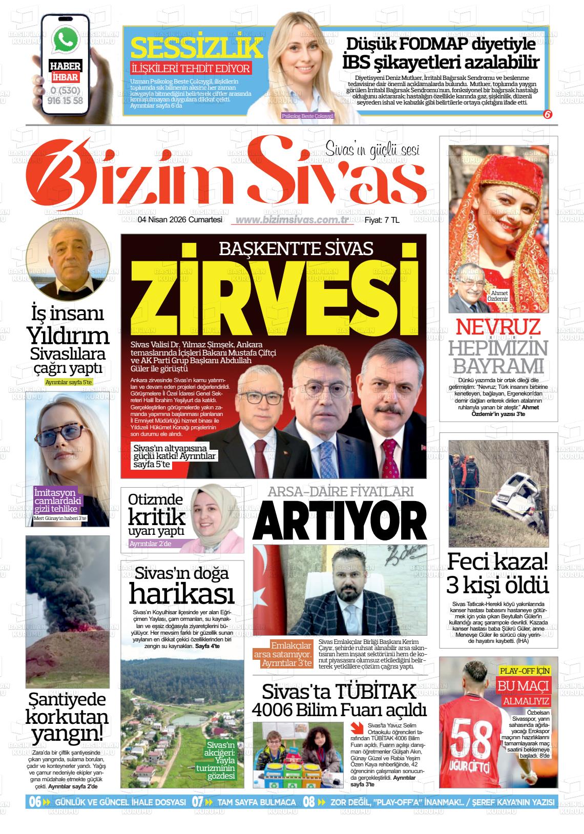 Sİvas Yerel Gazeteleri 04 Nisan 2026, Cumartesi Günü Manşeti