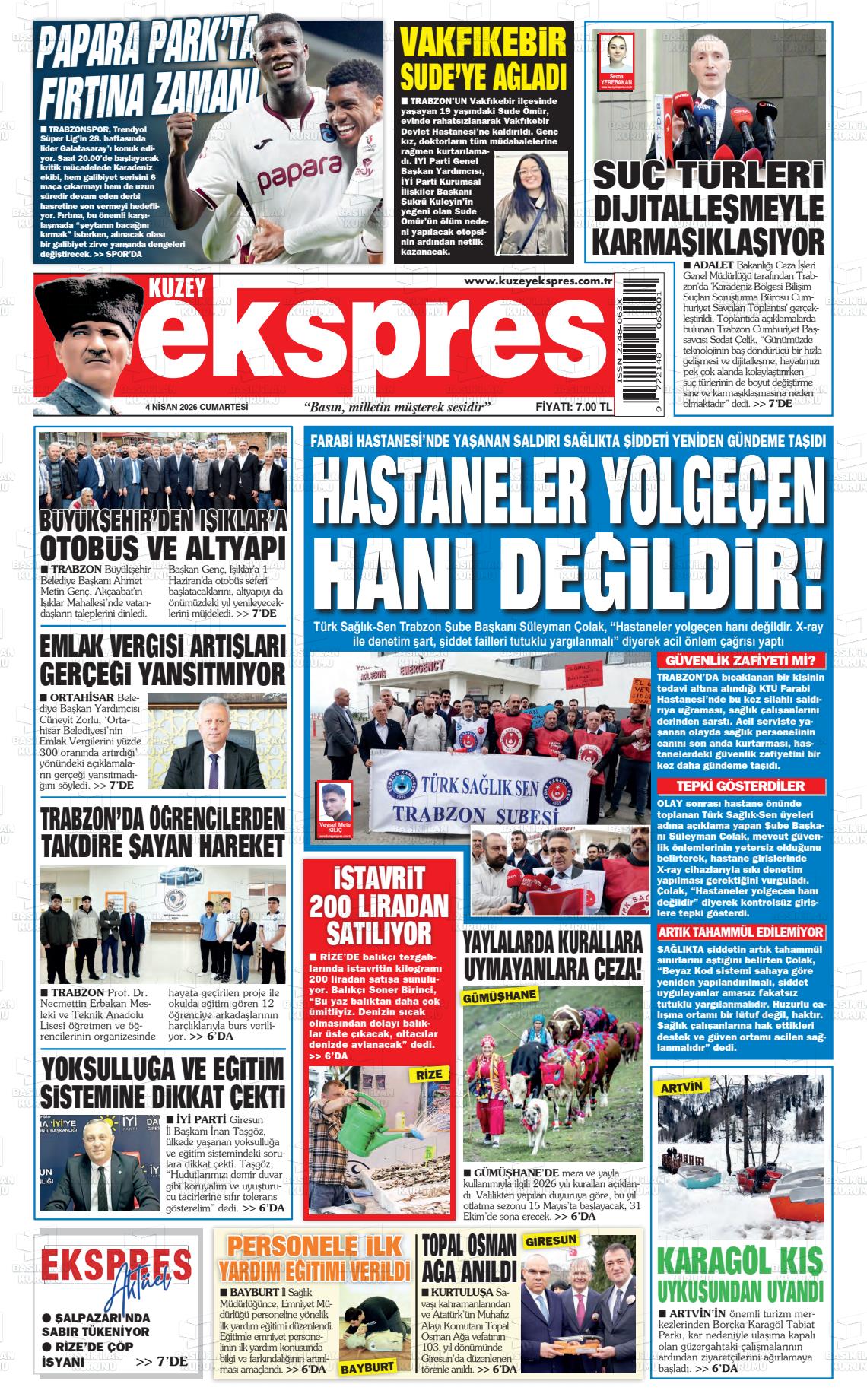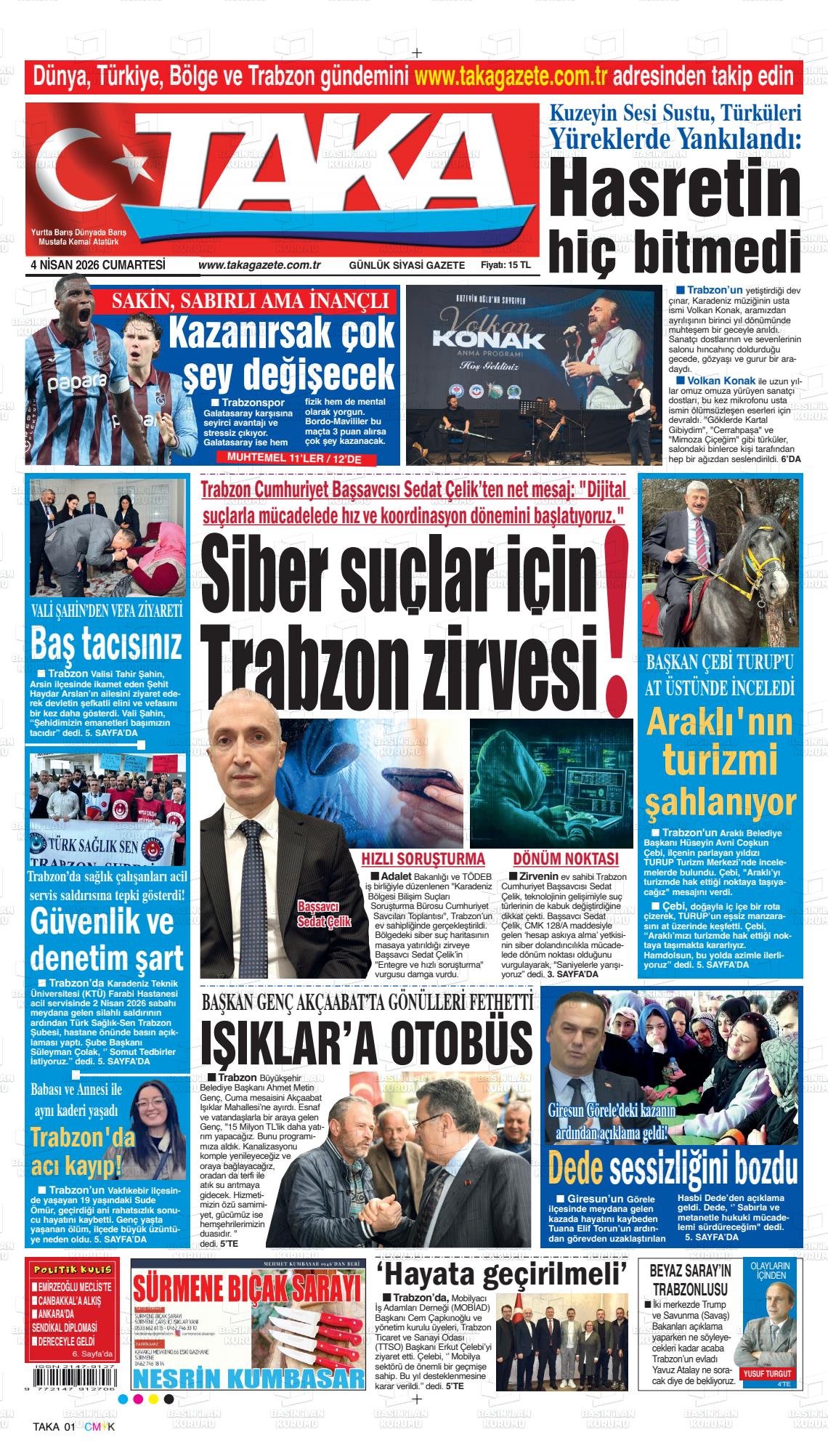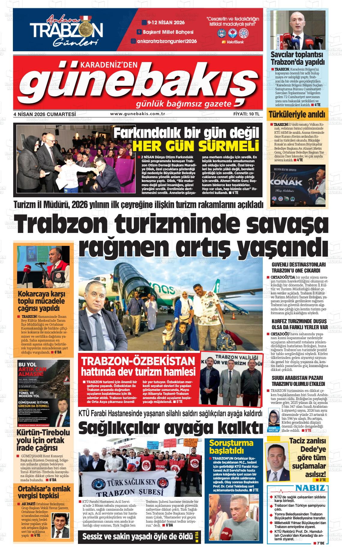 Trabzon Yerel Gazeteleri 04 Nisan 2026, Cumartesi Günü Manşeti