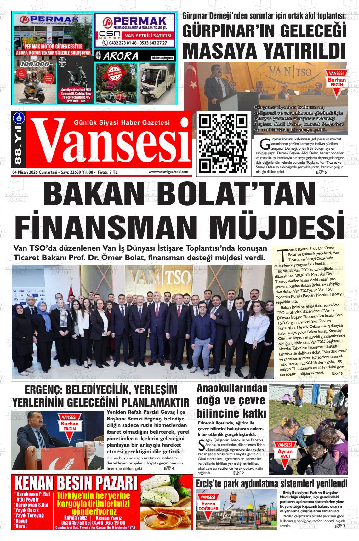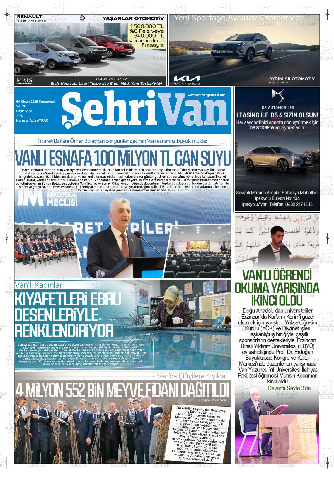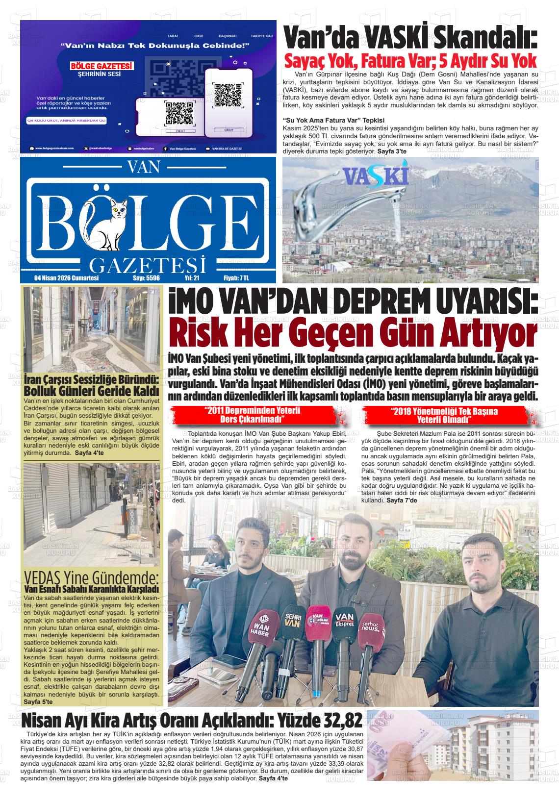 Van Yerel Gazeteleri 04 Nisan 2026, Cumartesi Günü Manşeti