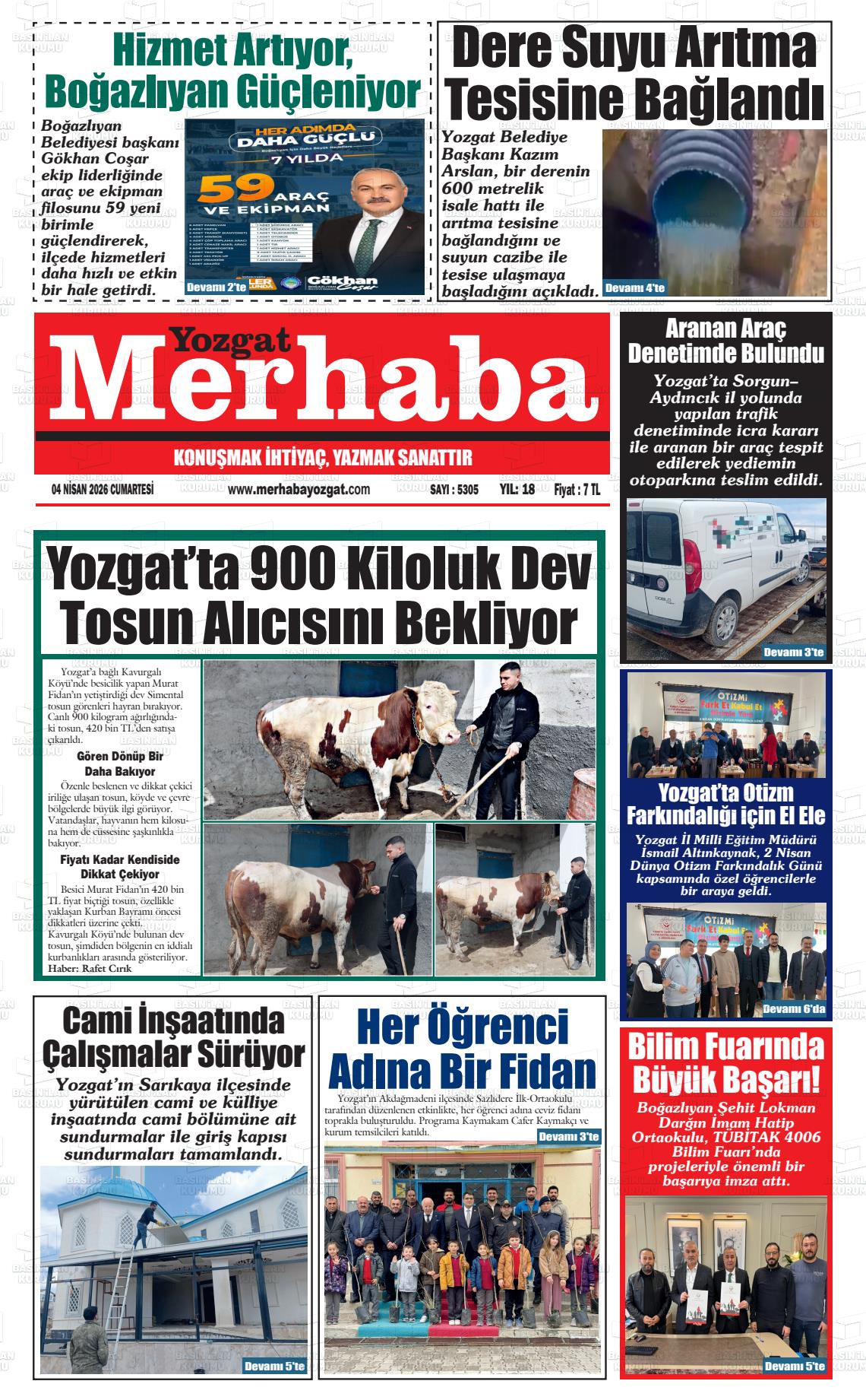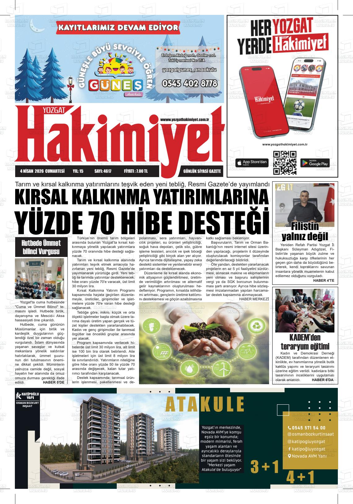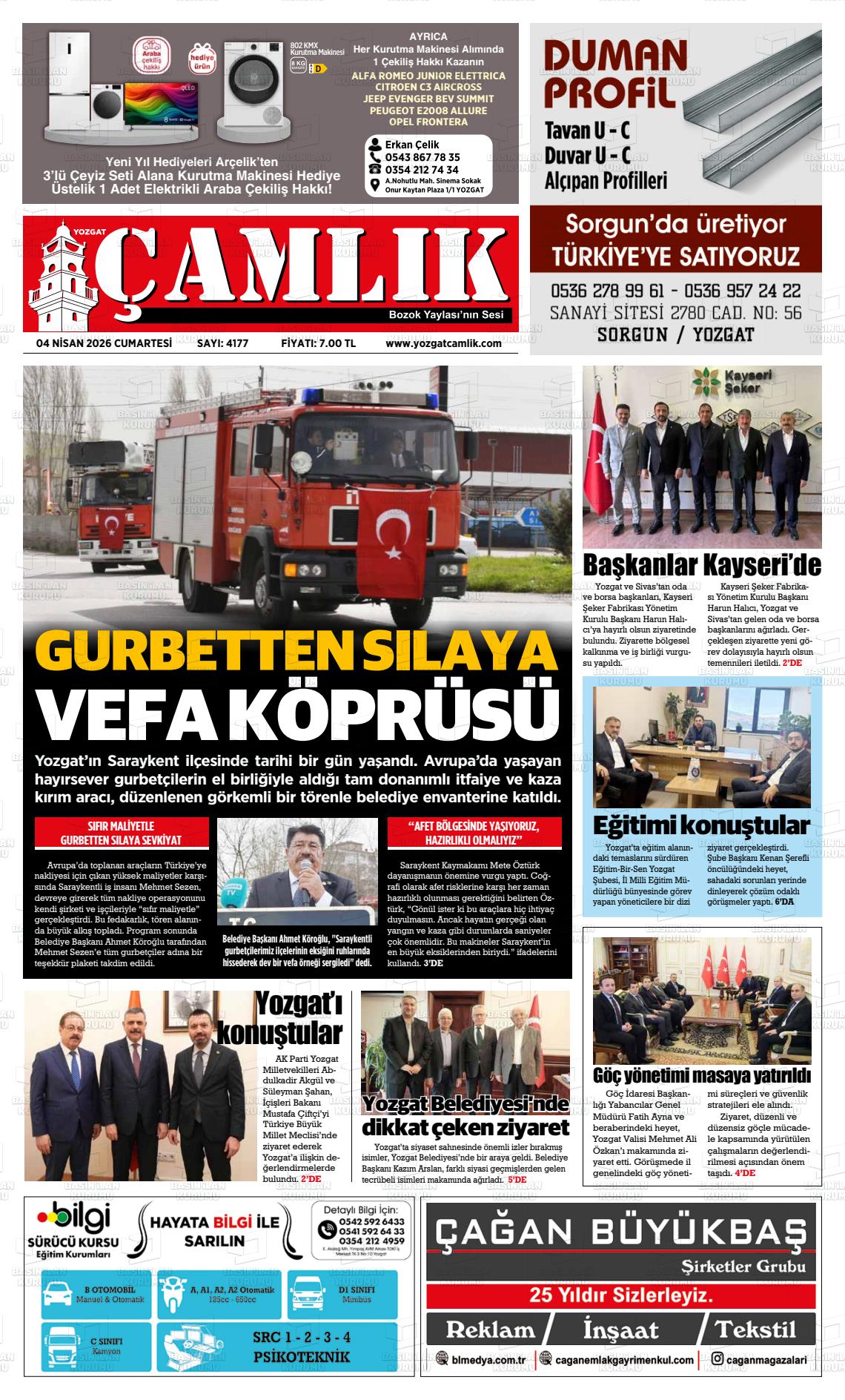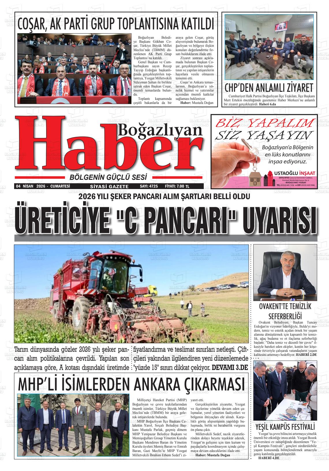 Yozgat Yerel Gazeteleri 04 Nisan 2026, Cumartesi Günü Manşeti