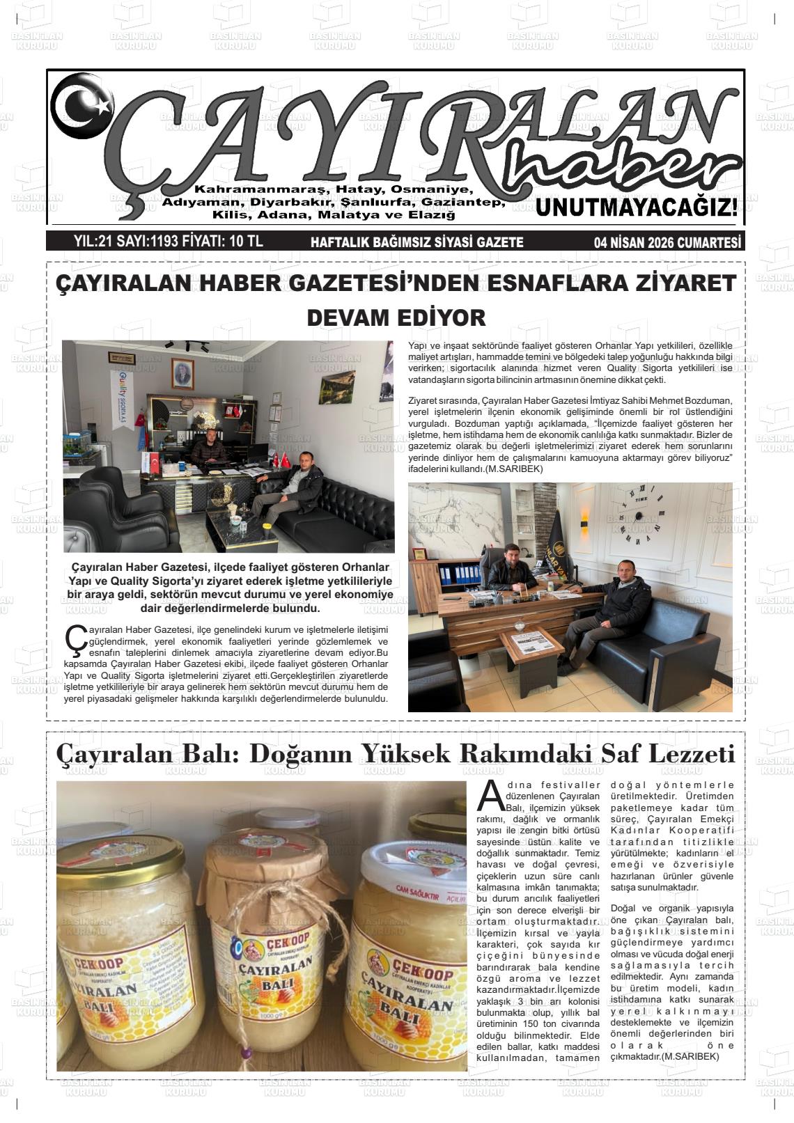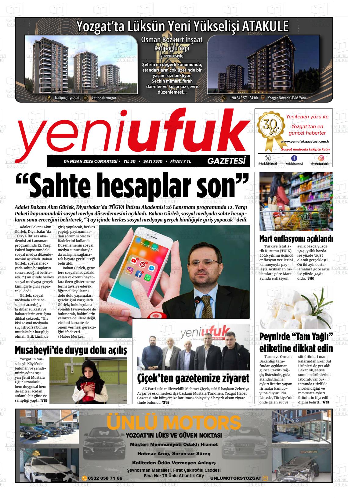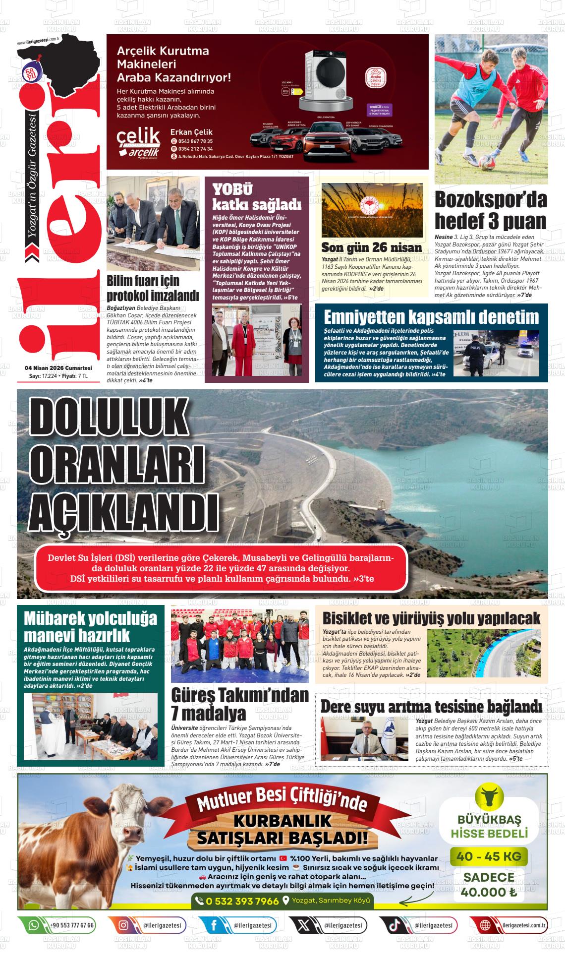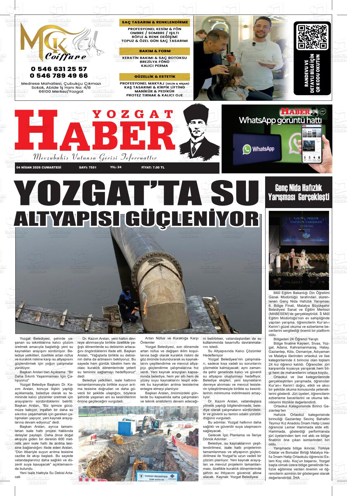 Yozgat Yerel Gazeteleri 04 Nisan 2026, Cumartesi Günü Manşeti
